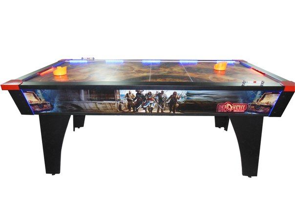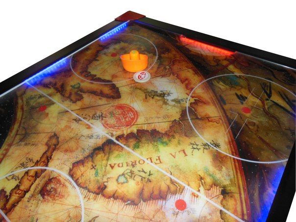 Поле изготовлено из высоко прочного ударостойкого пластика, корпус из качественного МДФ 16 мм, ламинированная наклейка позволит долго сохранить аэрохоккей в первозданном виде, яркая неоновая подсветка будет радовать ваши глаза, все металлические детали окрашены порошковой краской, ножки регулируются по высоте и Вы с лёгкостью выставите аэрохоккей по уровню пола. Также мы можем изготовить аэрохоккей под ваш эксклюзивный дизайн.