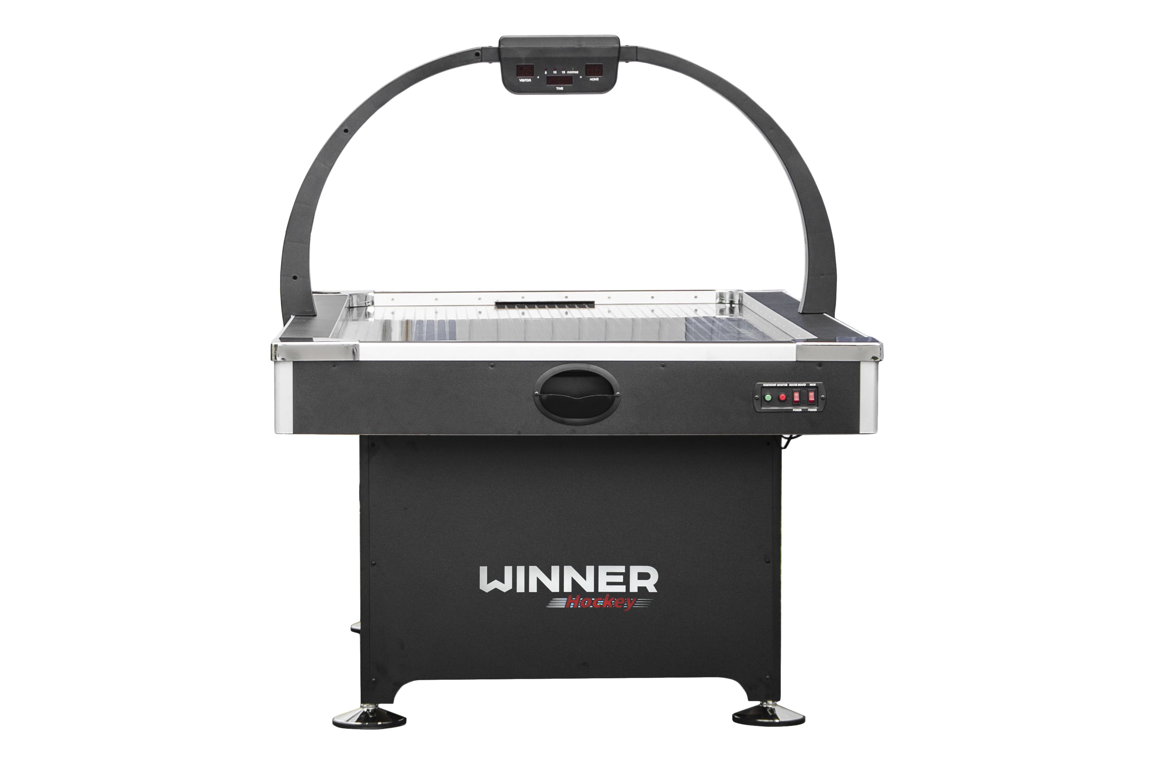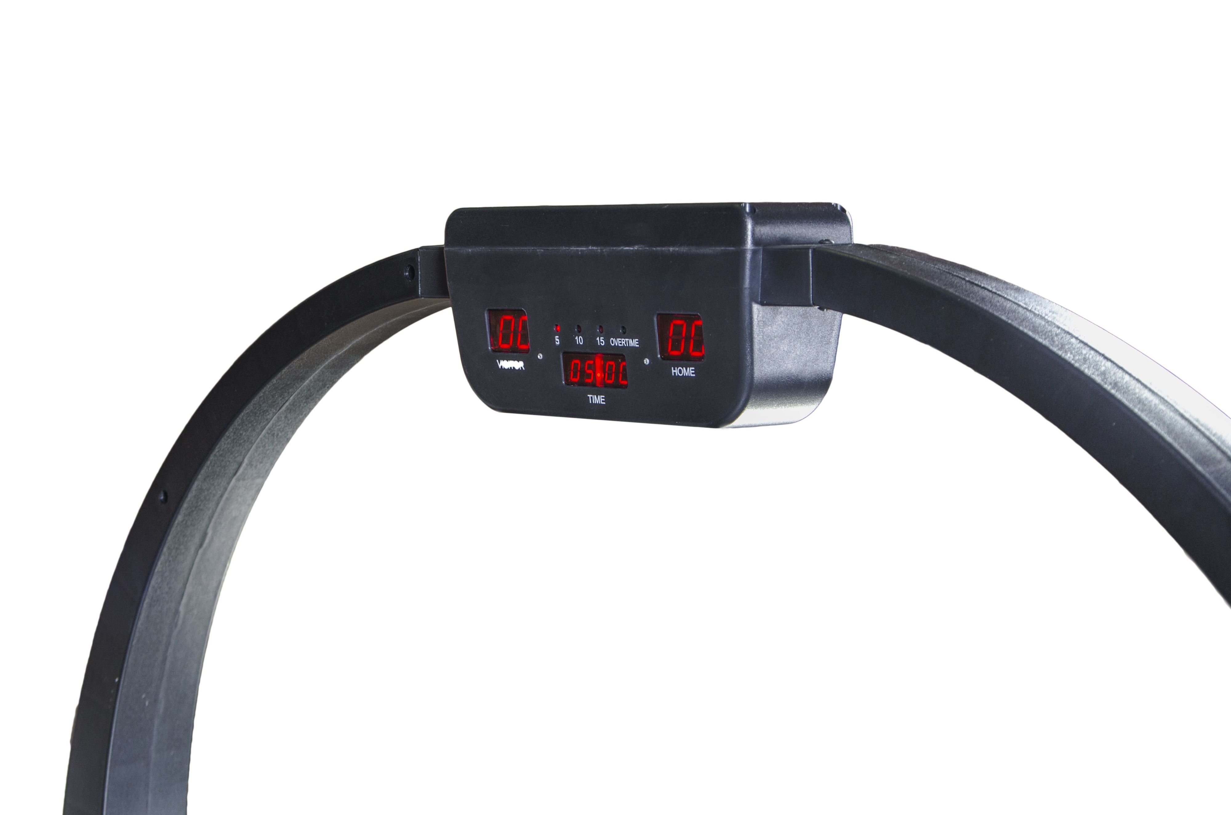 - Оборудован электронным счетчиком очков с программированием времени матча и звуковой фиксацией забитой шайбы. Для того, чтобы счет матча постоянно находился в поле зрения игроков, счетчик очков установлен на раму над игровым полем.