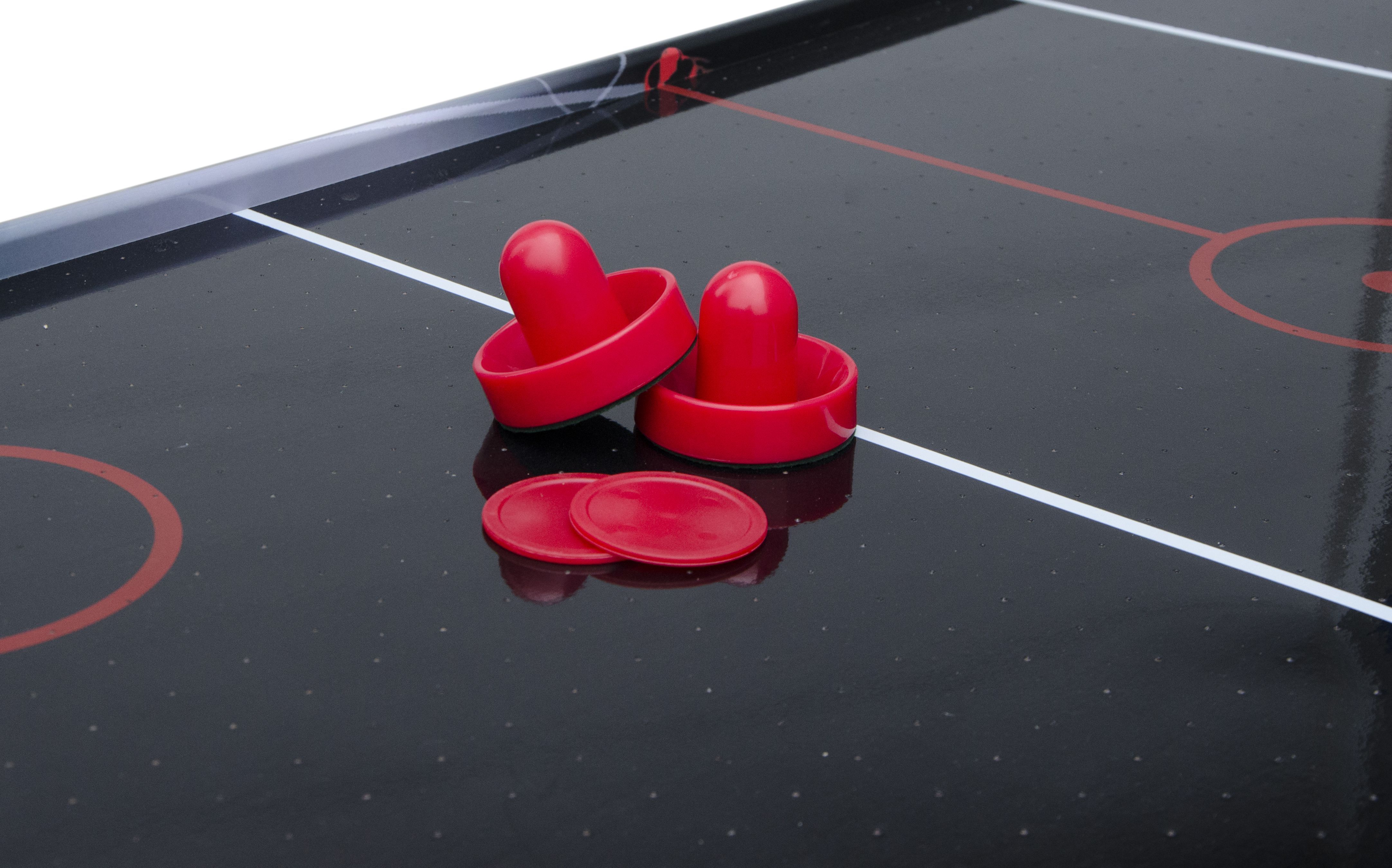 Игровой стол «High Speed» поместится в детской комнате или на веранде, это хороший подарок для подростка. Игровое поле черного цвета придают столу стильный вид, а лаконичный принт на бортах позволяет установить аэрохоккей в любом интерьере.
