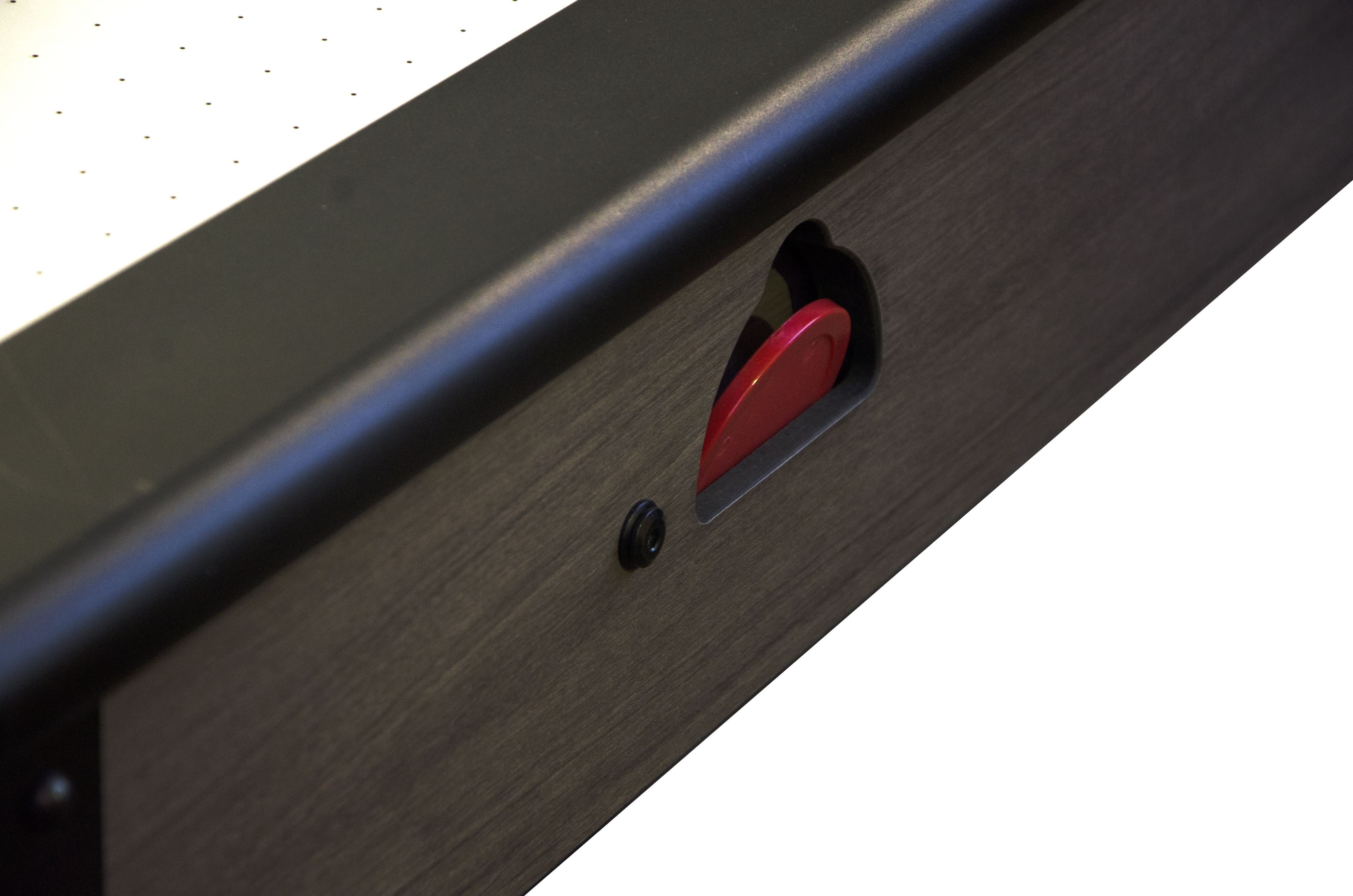 Конструкция опор полностью исключает расшатывание стола во время игры - стол будет неподвижен даже во время самых азартных матчей. Система домкратов гарантирует правильно отрегулировать уровень игрового поля - для лучшего в жизни аэрохоккейного матча Вам нужно лишь нажать тумблер включения.