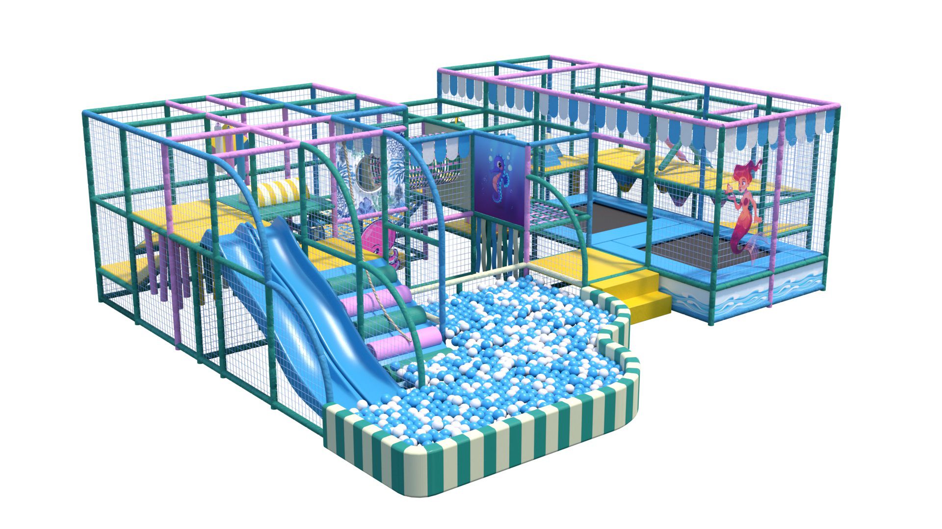 Детский активити комплекс — лабиринт для детей от трех лет с разнообразными препятствиями. Включает горку, сухой бассейн с шариками, несколько батутов. Для установки потребуется 80 кв. м. площади.