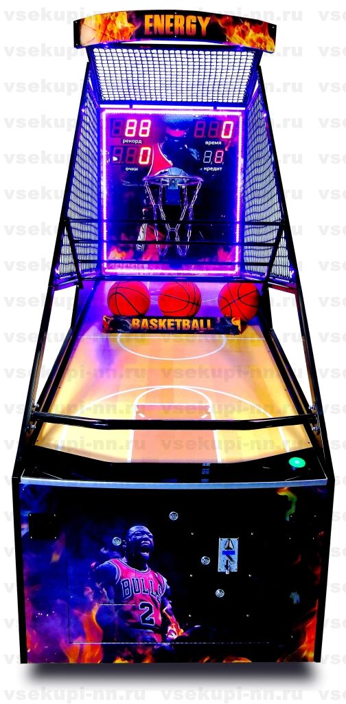 Описание игры: Цель — забросить мяч в корзину как можно большее количество раз, зарабатывая очки за каждое попадание. Она будет интересна и детям, и взрослым. Такой игровой аттракцион можно установить в развлекательном центре, на детской площадке, в кафе, баре, зоне кинотеатра или торгово-развлекательного центра, а также в зонах ожидания аэропорта или вокзала.