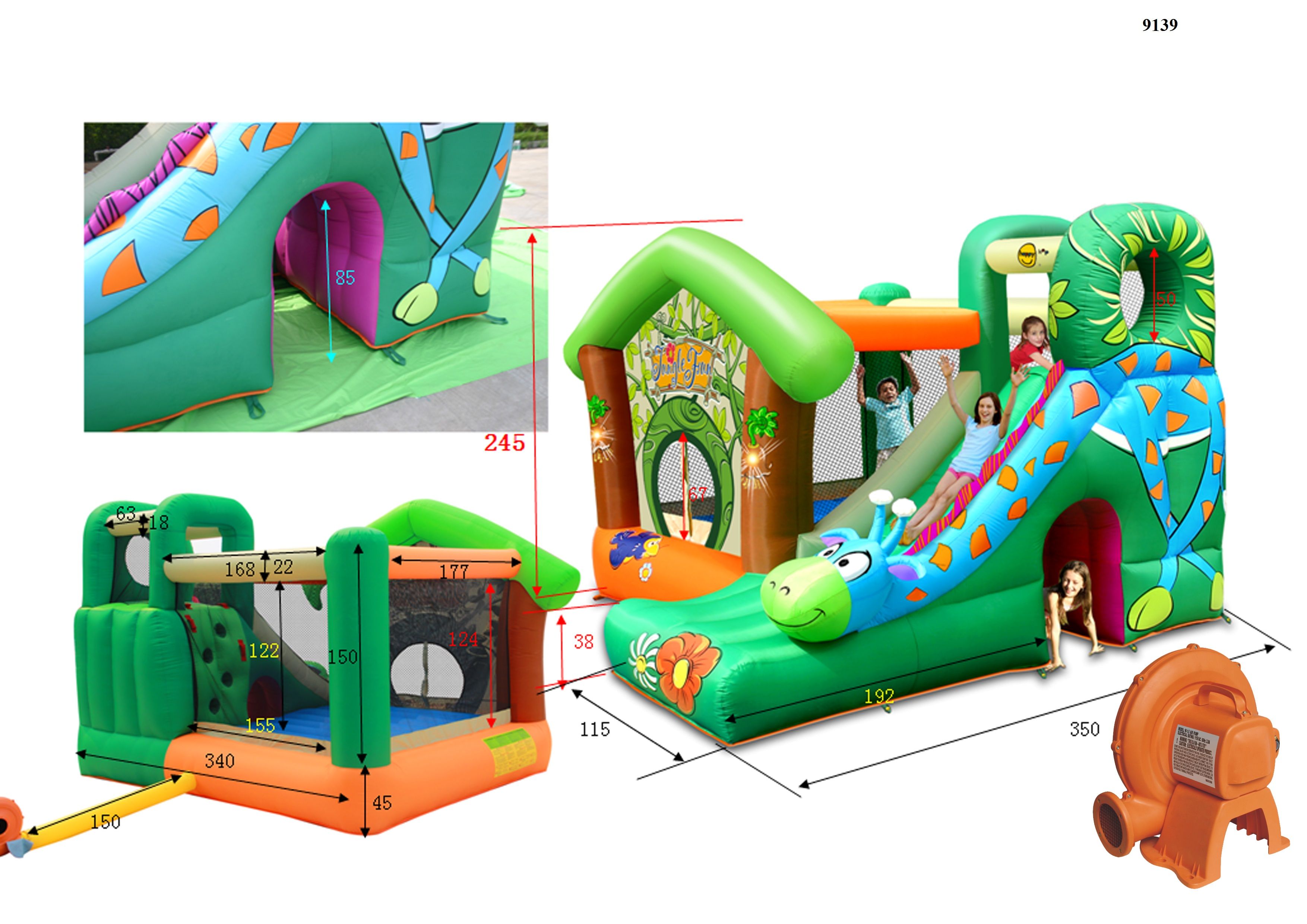 Батут работает от постоянной подачи воздуха, воздухонагнетатель продается в комплекте с батутом!