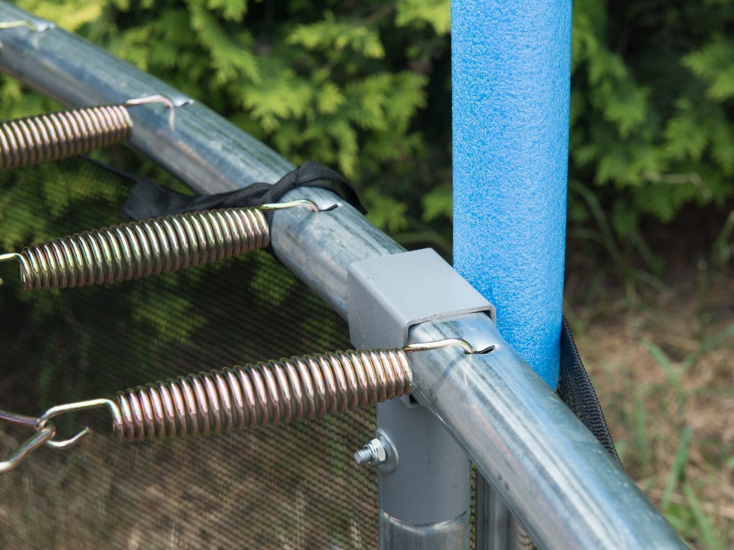 - Рама батута изготовлена из оцинкованной стальной трубы Ø38 мм. Специальные кронштейны «T-Connector» квадратного сечения исключают случайный поворот или ослабление соединения со временем.
