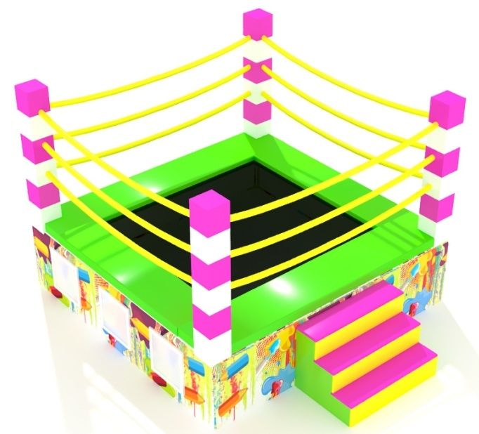 Яркая и современная батутная арена, предназначенная для прыжков, игр и спортивных тренировок для детей.