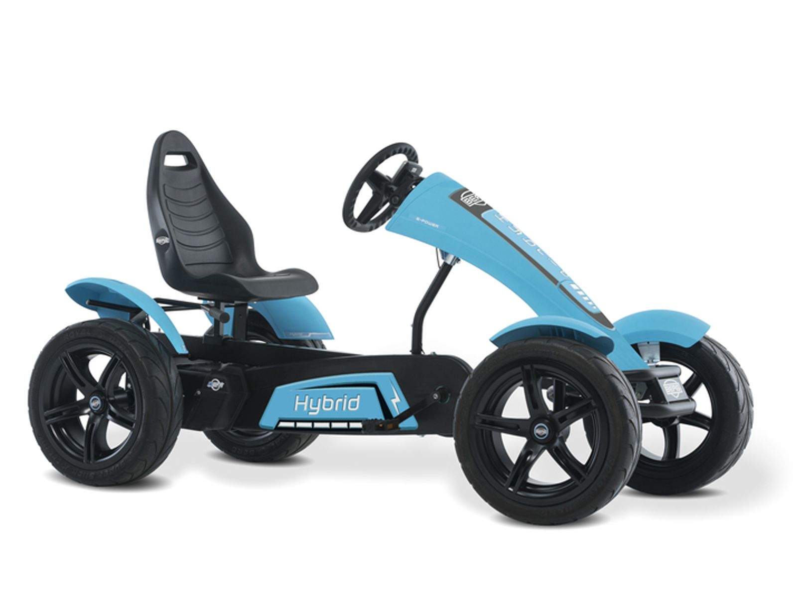 Веломобиль который только появился и сразу стал лучшим представителем своей серии. Спортивный дизайн, регулировка сиденья, ручной тормоз, а так же привод усиленный двигателем, съемный аккумулятор и информативный дисплей на рулевой колонке! Этого мало? Добавьте к этому, что веломобилем может управлять ребенок или же взрослый человек ростом до 210см и водителю будет одинаково удобно за рулем BERG Hybrid E-BFR.