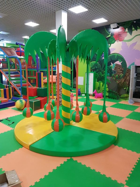 Механическая карусель — пальма, вращающаяся на подшипнике. Приводится в движение при раскручивании детьми. Не требует электропитания. Легкость в установке и эксплуатации. Отличный вариант для комплексного наполнения большой игровой зоны. Цветовое решение позволяет вписать в любую тематику.