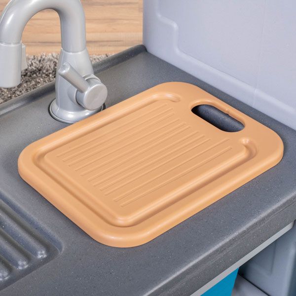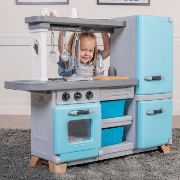 Игровой набор для детей Кухня Винтаж — это имитация настоящей кухни с множеством реалистичных функций. Искусственная нержавеющая сталь и реалистичные деревянные детали в сочетании с холодильником и морозильной камерой в винтажном стиле делают его отличным дополнением к любой игровой зоне. Родителям понравится внешний вид, а детям — множество интерактивных функций. Дети будут заняты включением и выключением мойки, открытием дверцы духовки и изменением времени на часах. Входящая в комплект разделочная доска идеально подходит по размеру, чтобы поместиться над раковиной и предоставить еще больше места для приготовления воображаемых блюд. Ручки-кликеры имитируют настоящую плиту, а электронное освещение и звуки автоматически активируются, когда кастрюли и сковородки ставятся на конфорку, чтобы оживить волшебство игры.