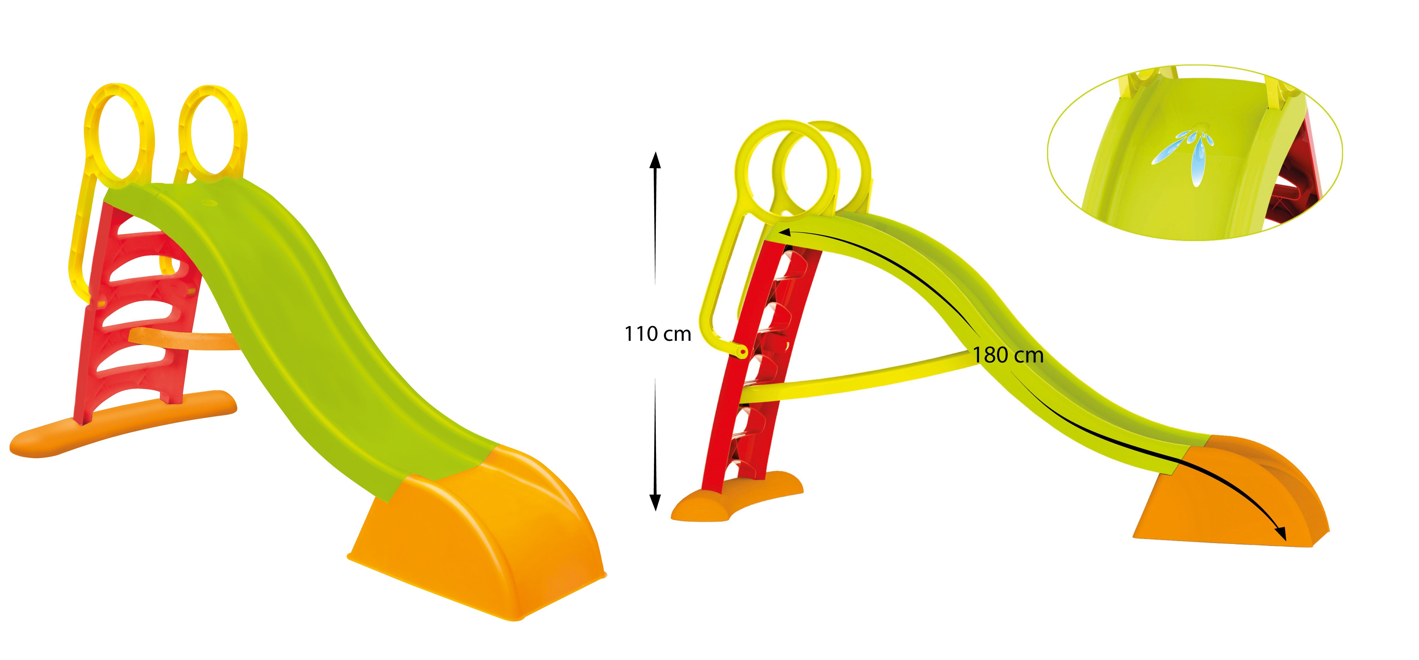 Горка детская большая предназначена для игры на свежем воздухе. Есть возможность подключить воду. Лестницы сделаны из безопасного для детей пластика, который снижает скольжение. Для детей от 2-х лет.