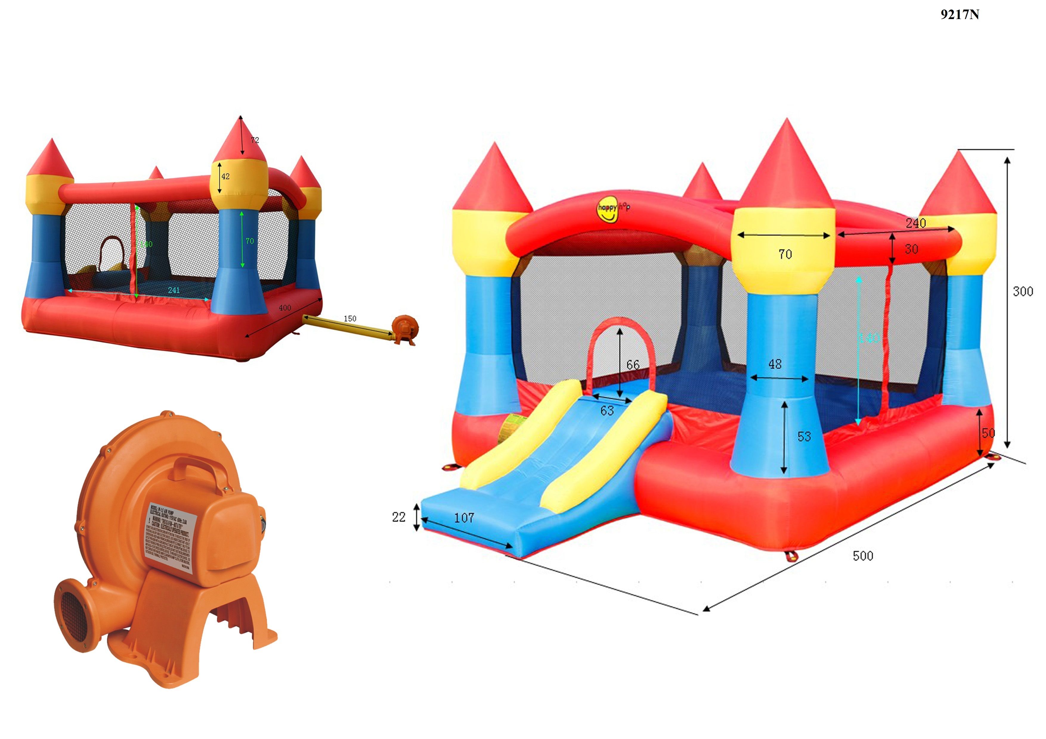 Батут работает от постоянной подачи воздуха, воздухонагнетатель продается в комплекте с батутом!