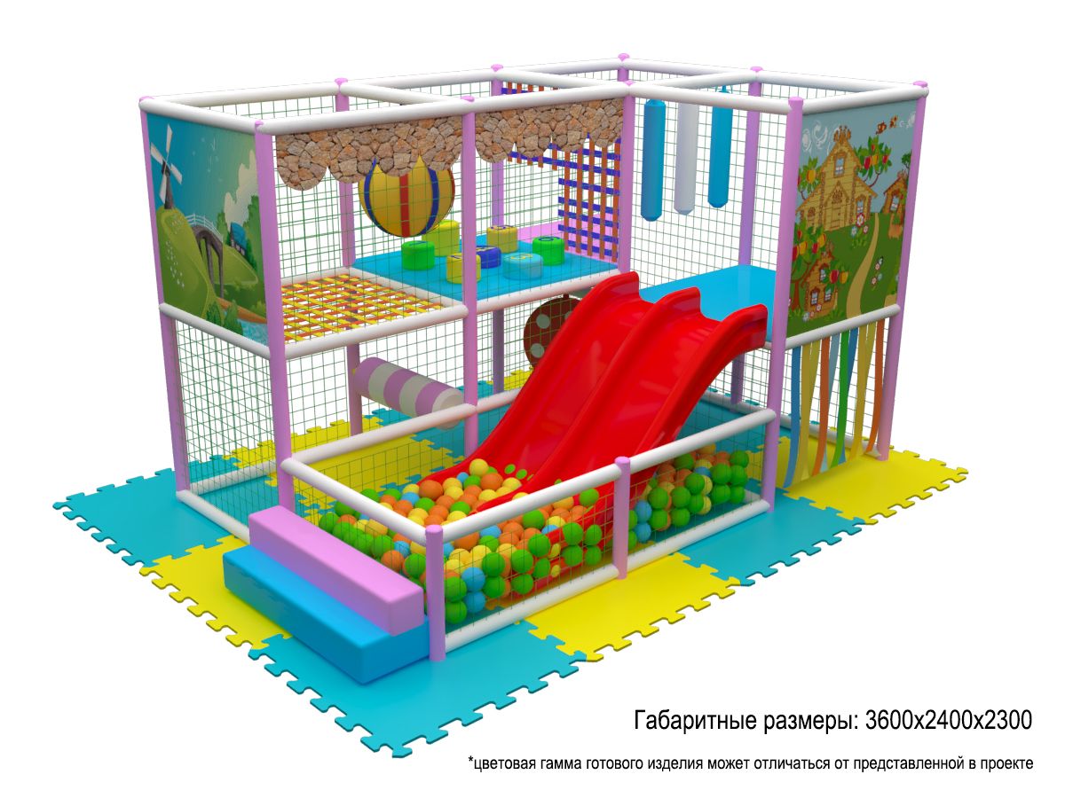 Длина3.6 м.Ширина2.4 м.Высота2.5 м.Количество уровней2Занимаемая площадь, кв.м.1 - 10 кв.мГоркаестьСухой бассейн с шарикамиесть -