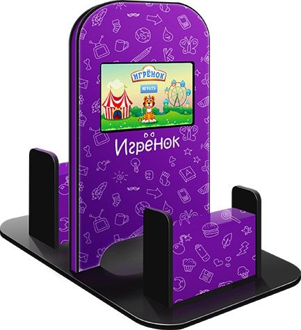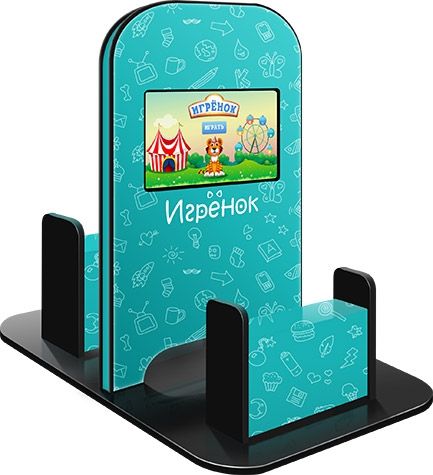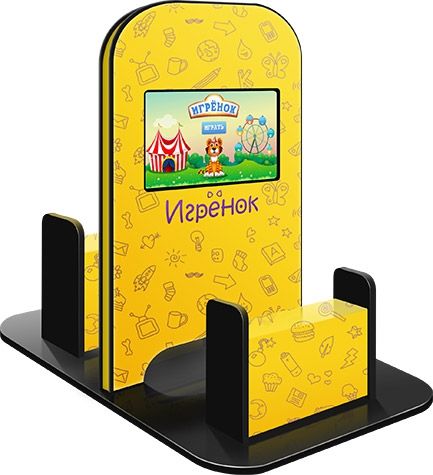 Двусторонняя напольная модель Игрёнок Double с двумя антивандальными сенсорными мониторами 21.5” – это настоящая альтернатива детской игровой комнате! При габаритах основания менее 1 м кв. он позволит уже нескольким детям сосредоточиться на игре, а родителям спокойно заниматься важными делами и покупками.