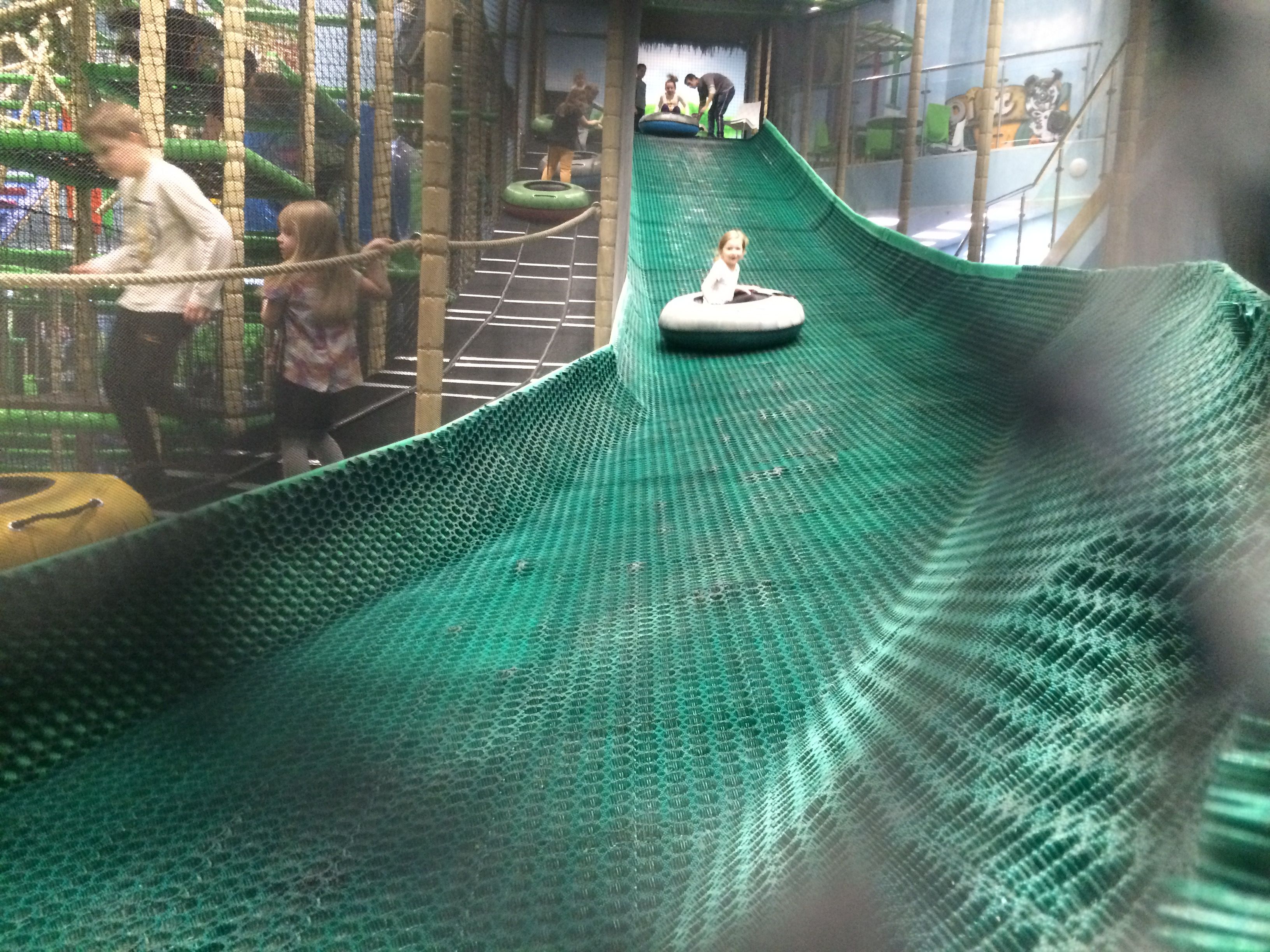 Катание на тюбингах теперь возможно круглый год. Благодаря использованию специального покрытия, горка дает возможность кататься на тюбингах внутри помещения. Высота горки 4,5 метра, протяженность спуска 12 м.