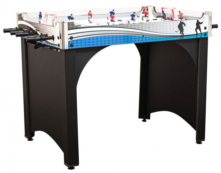 - Корпус настольного хоккея Alaska поставляется в собранном виде. Вам лишь необходимо установить игроков, прикрутить ножки и механические счеты. Стол готов к игре!