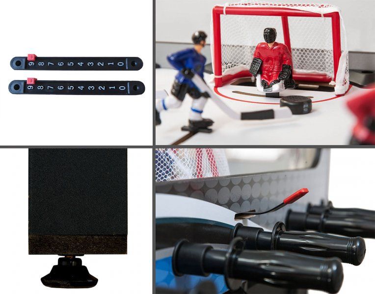 За ходом игры помогает следить счетчик, который выводит информацию о забитых голах на электронное табло. Все как на настоящем хоккейном матче!