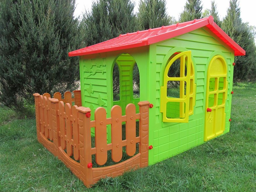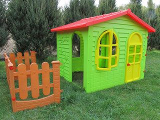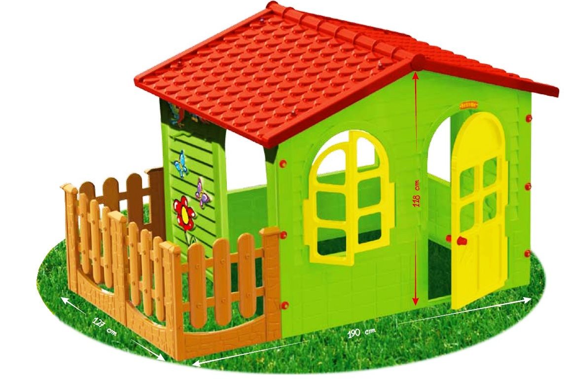 Большой, красочный садовый домик для детей от 1 года. Окна и двери открываюся. Украшен яркими наклейками. В доме есть сад, окруженный элегантным заборчиком, предлагая дополнительное пространство для игры. Благодаря своим большим размерам, дом подходитдля игр большой группы детей.