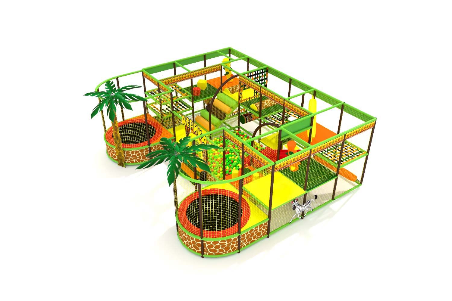 Яркий, солнечный лабиринт, основные цвета желтый, зеленый, оранжевый. Украшает пальмами и банерной печатью «Жираф». Погрузит маленьких посетителей Вашей зоны в джунгли полные приключений. В лабиринте: двускатная горка, сухой бассейн, два спортивных батута, сетки-лазы и всевозможные препятствия.