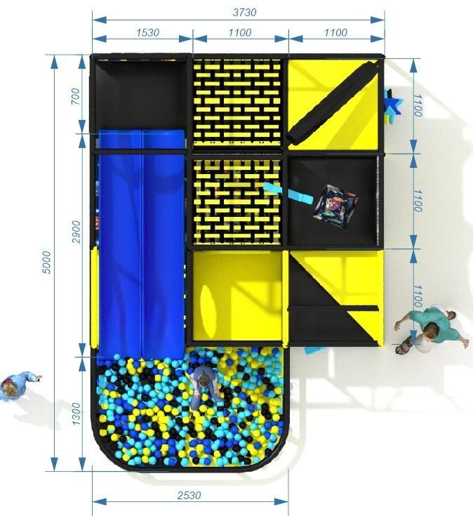 Длина6 м.Ширина6 м.Высота2.5 м.Количество уровней3Занимаемая площадь, кв.м.20 - 30 кв.мГоркаестьСухой бассейн с шарикамиестьВозраст детей от3 летСрок монтажа5 дн. -