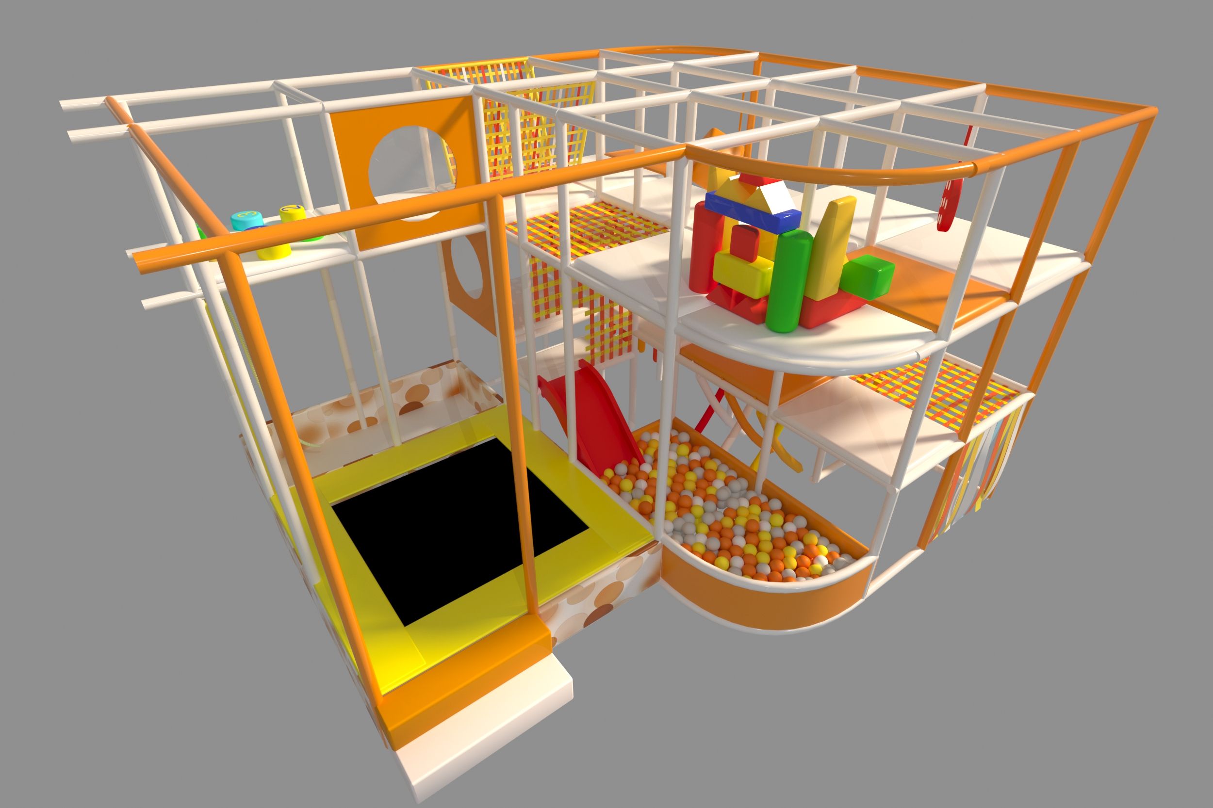 Длина5.8 м.Ширина4.8 м.Высота3.6 м.Занимаемая площадь, кв.м.20 - 30 кв.мГоркаестьСухой бассейн с шарикамиестьБатутесть -