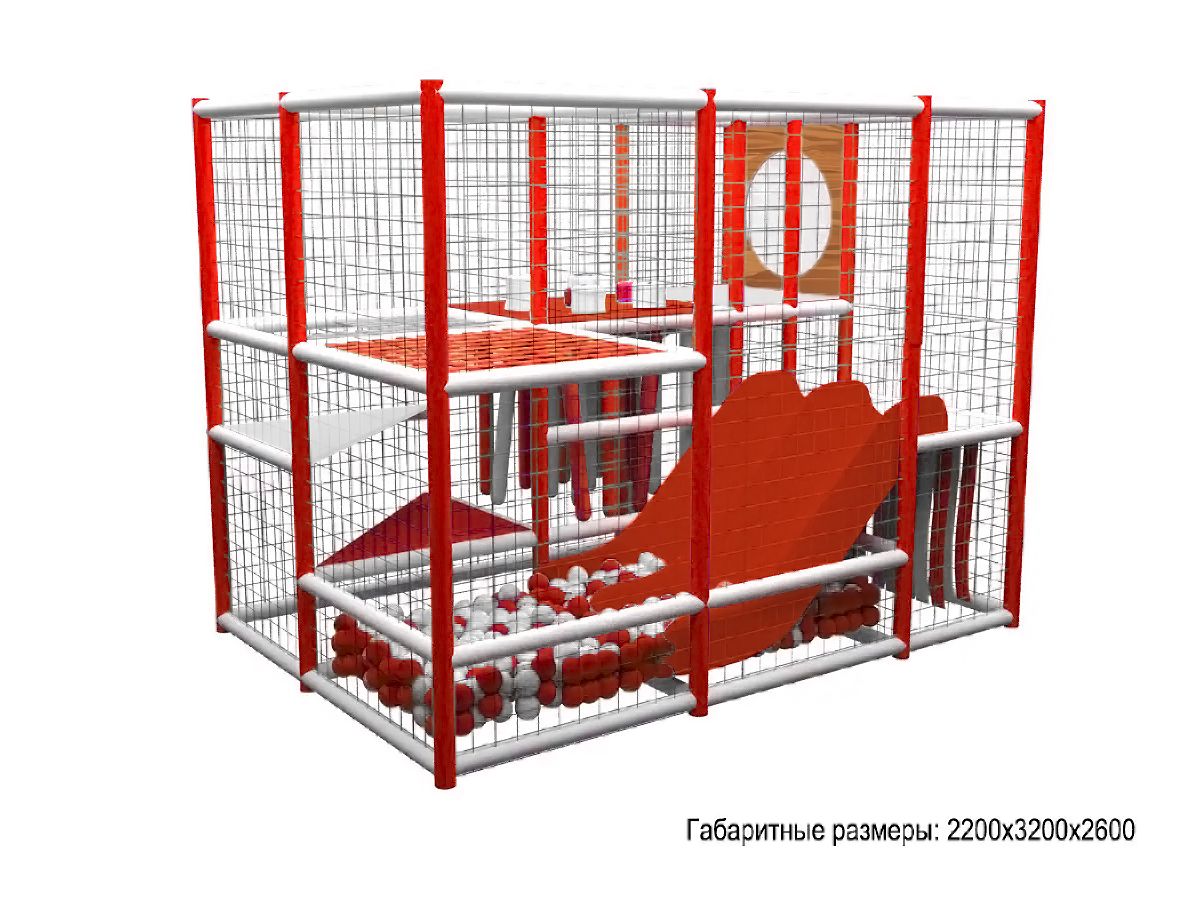 Длина2.2 м.Ширина3.2 м.Высота2.6 м.Возрастот 3-х летКоличество уровней2ГоркаестьСухой бассейн с шарикамиесть -