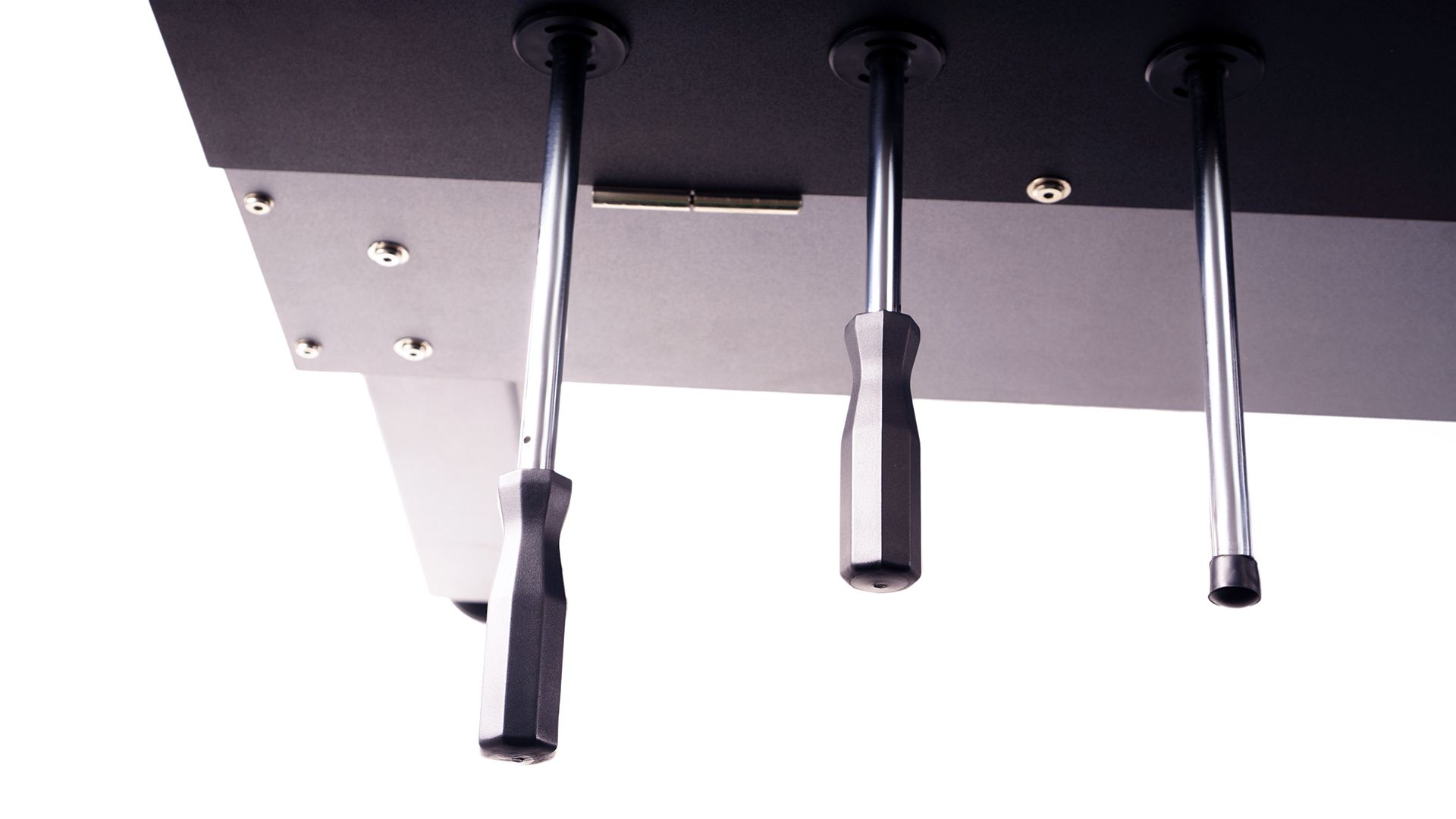 - Амортизация на штангах не только уменьшает уровень шума, но и защищает элементы стола от износа, предоставляя долговечную и стабильную игровую сессию;