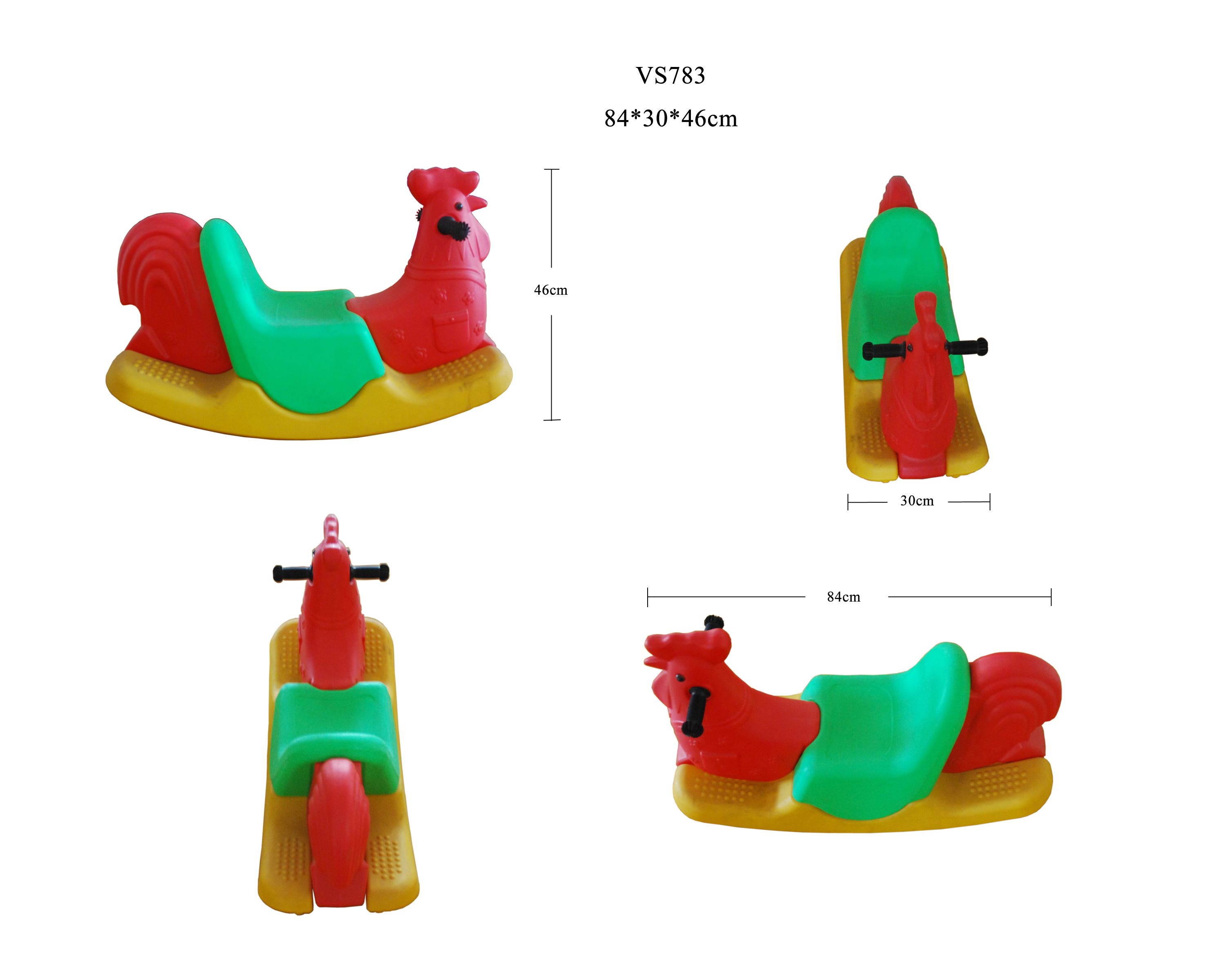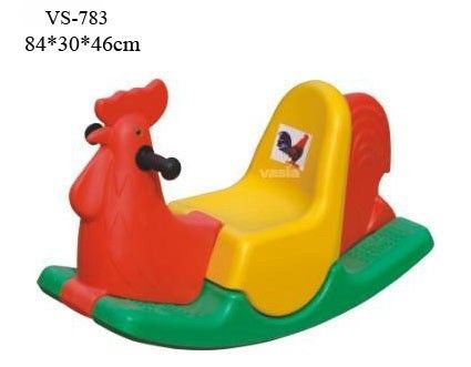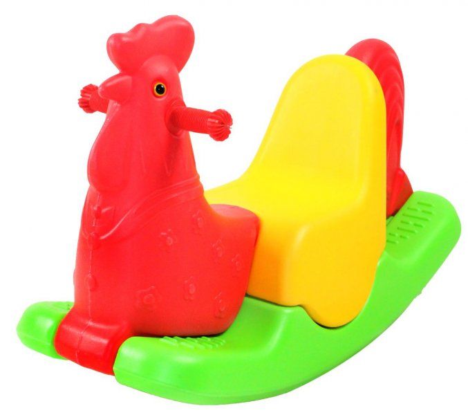 Детская игровая качалка, стилизованная под петушка, изготовлена из яркого, однородного и надежного пластика.