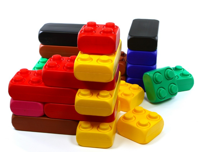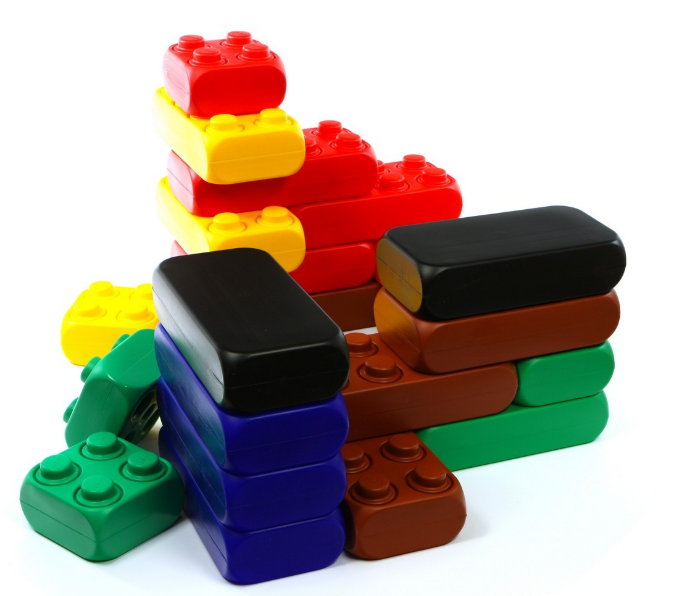 - Блоки разного цвета, пластиковые детали с закругленными краями;