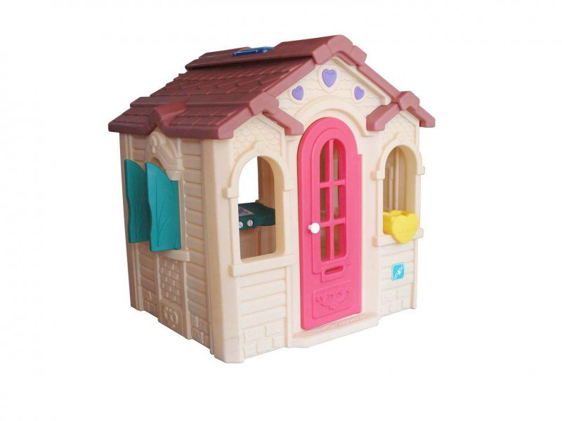 Легко собирается и не требует бетонирования. Пол отсутствует. Удобен в эксплуатации. Товар сертифицирован. Игровой домик выполнен в пряничном стиле с полноразмерной дверью, открывающимися и закрывающимися ставнями, декоративной крышей, покрытой черепицей и имеющей световое окно, ящиком для цветов. Внутри имеются часы с движущимися стрелками, зеркалом и трансформируемая кухонная плита, которая поворачивается на 180 градусов и превращается в игрушечное барбекю. Отсутствие пола позволяет разместить его абсолютно на любом покрытии. Если ставить его во дворе, то лучше сделать песчаный пол, тогда даже в дождливую или ветреную погоду дети смогут играть в нем как в песочнице. Все конструкции фирмы Lerado выполнены из высокопрочного и морозостойкого пластика (ПНД).