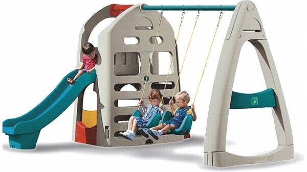 Комплекс оснащен парой качелей , которые подходят для детей от 4х лет и выдерживают нагрузку около 70 кг. -