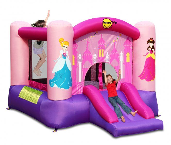 Изделие выполнено в любимом розовом цвете, украшено изображением замка и фигурами принцесс и оснащено горкой. Стенки защищены специальной прозрачной сеткой — вы можете наблюдать за ребенком, пока он играет. Доступная стоимость, компактный размер, простота установки — надувной батут «Милая Принцесса с горкой» Happy Hop идеально подходит для частного использования. Его можно поставить на даче или в частном доме, на улице или в помещении (главное, чтобы габариты комнаты позволяли). Изделие не вызовет сложностей в эксплуатации, его легко устанавливать. Эта надежная и прочная модель выдерживает до 90 кг. Одновременно прыгать на ней могут двое детей.