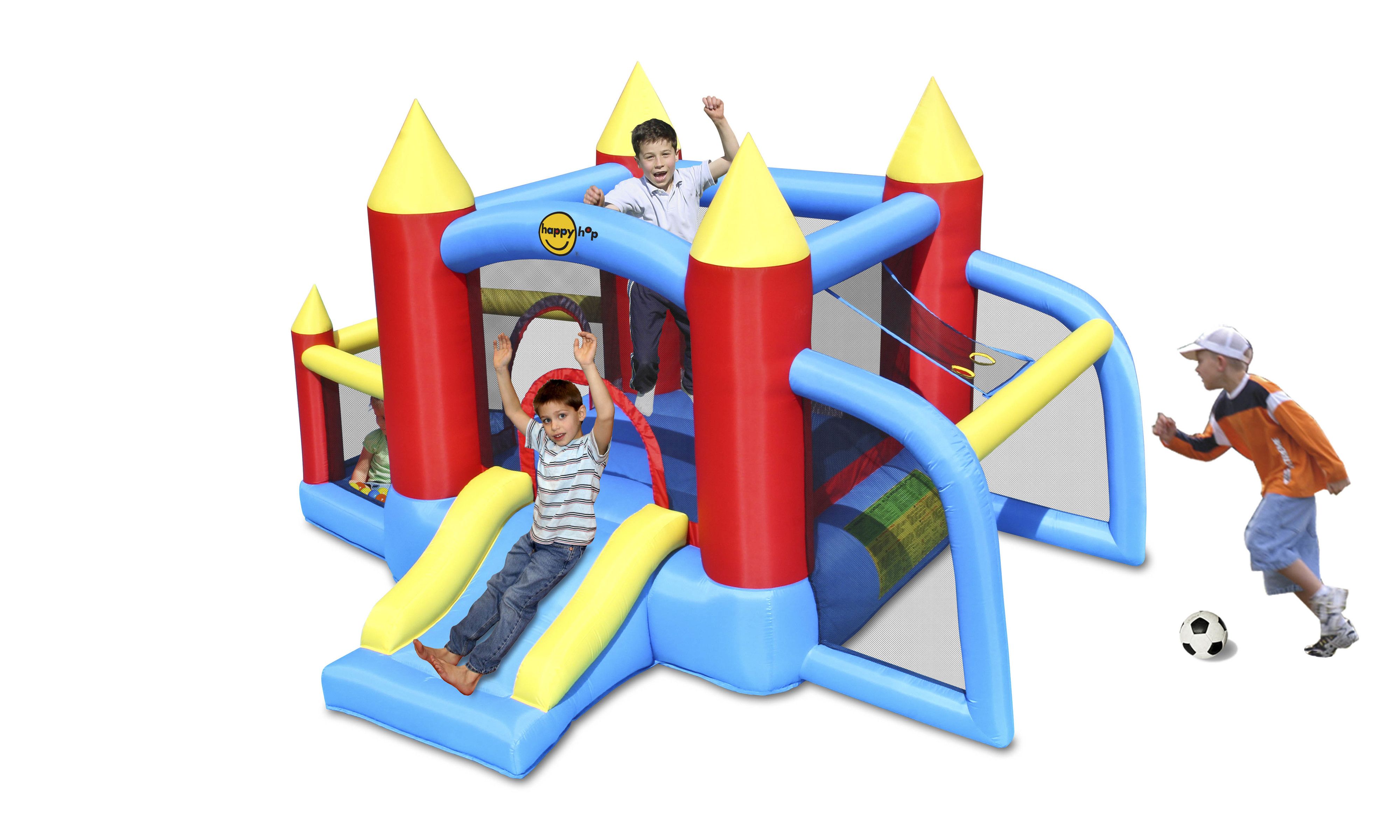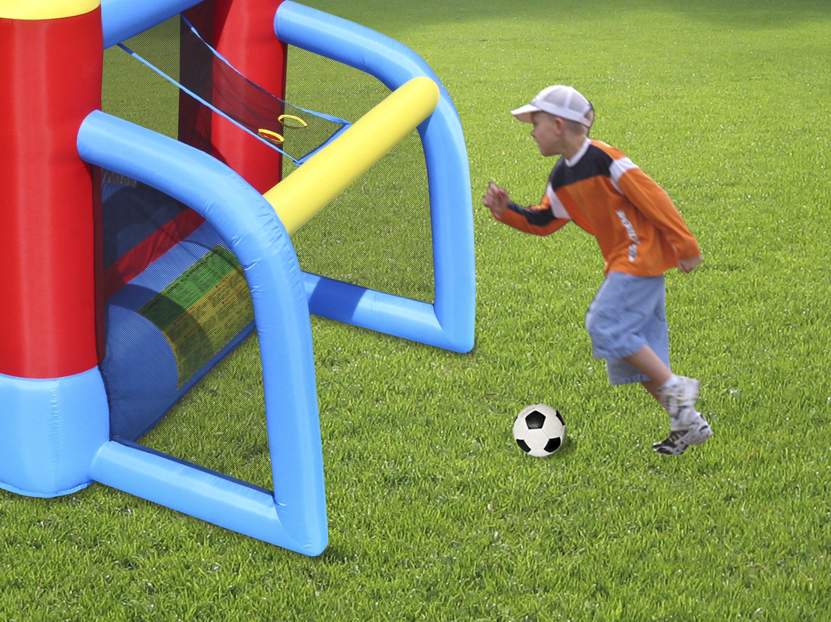Надувной батут «Футбол» от Happy Hop — это красочная игровая площадка для юных любителей футбола. Он оснащён защитной сеткой и подходит для детей от 3 до 10 лет. Размеры батута: 300 см в длину, 225 см в ширину и 175 см в высоту. Максимальная нагрузка составляет 90 кг.