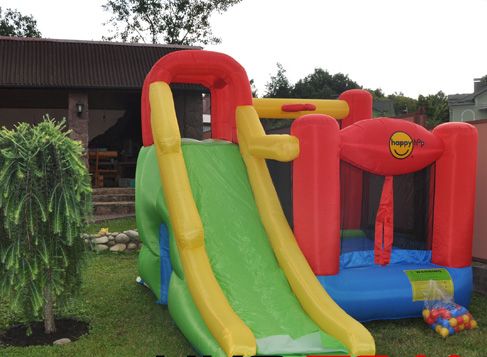 Универсальный игровой городок для детей любого возраста. На площадке для прыжков могут играть сразу 2 – 3 человека. А еще один участник игры может в ожидании своей очереди покататься на горочке. Для самых маленьких под горочкой расположен небольшой домик. Модель можно устанавливать как на полу, так и на земле. Прочность конструкции обеспечивают специальные пластмассовые крепежи.
