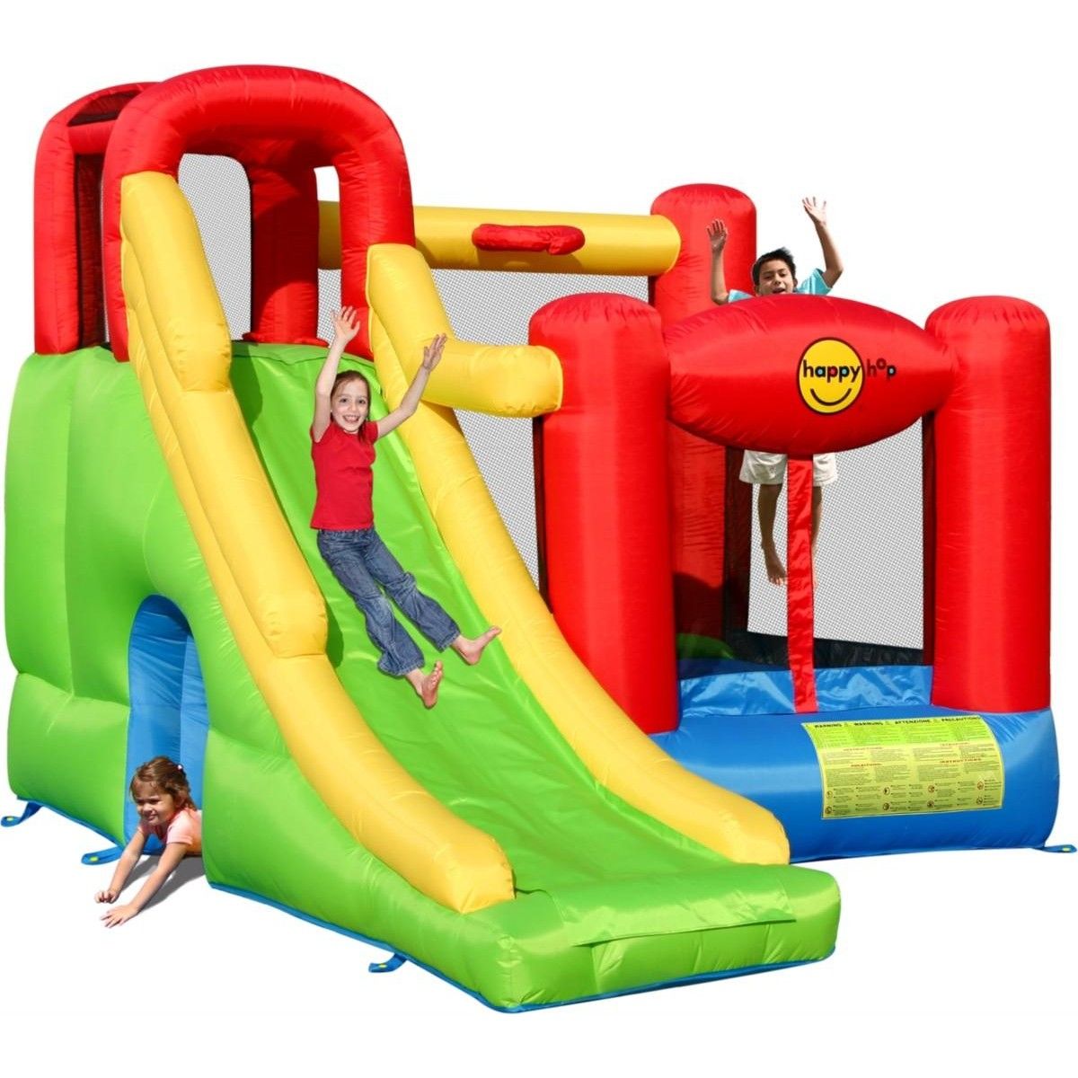 Артикул9060Длина360 см.Ширина300 см.Высота240 см.Вес брутто24.67 кг.Размеры коробки84 х 45 х 43 см.Объем коробки0.1625 м3Допустимое количество детей на батуте4 чел.Материал изделияПрыжковая поверхность: ПВХ ламинированный(laminated PVC). Прочее: ламинированная ткань ОксфордГарантийный срок30 днейДопустимая температура воздуха при эксплуатацииот −15 до + 40 °CПрочность батута на растяжениедо 136 кг.Прочность на разрывдо 13,6 кг.Прочность на соединениедо 27,2 кг.БрендHAPPY HOPСтрана происхожденияКитайВысота основания батута45 см.Размеры батута220 x 180 cм.Высота защитной сетки ограждения160 см.Размеры горки355 x 96 cм.Размеры прыжковой поверхности180 x 140 cм.Высота площадки горки154 см.Ширина скользящей поверхности60 см.Допустимая нагрузка181 кг. -