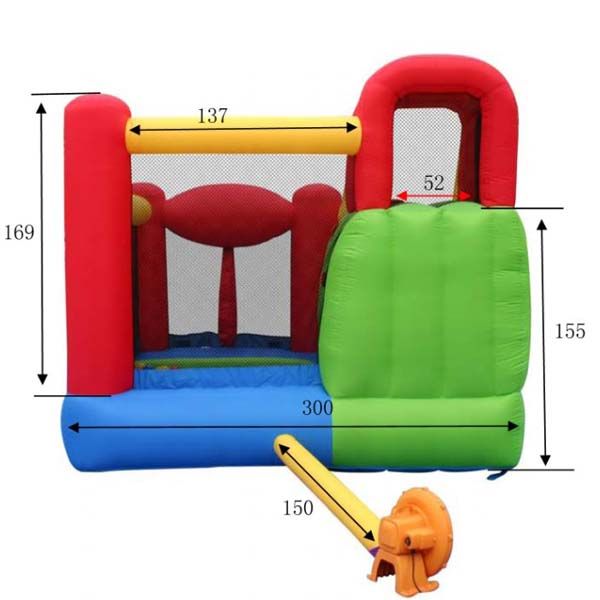 Батут работает от постоянной подачи воздуха, воздухонагнетатель продается в комплекте с батутом!