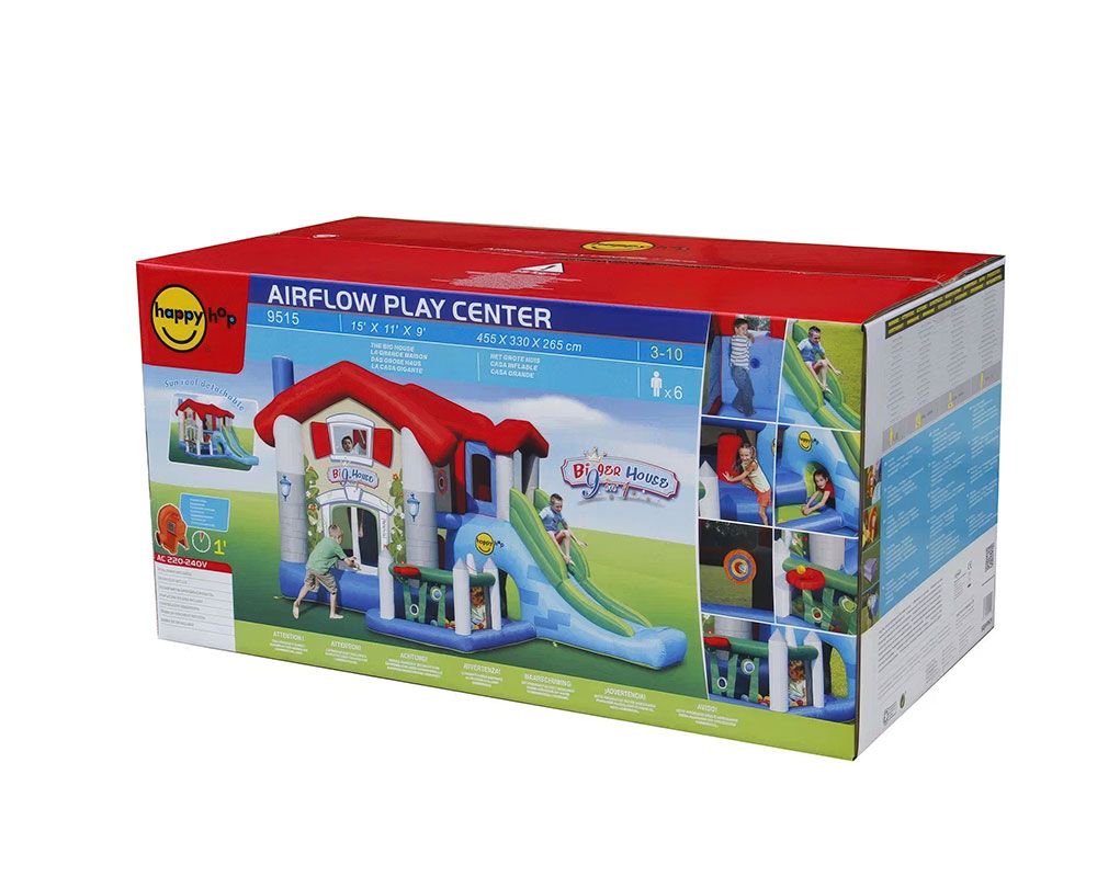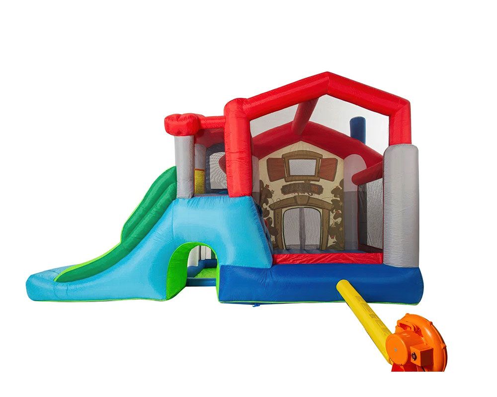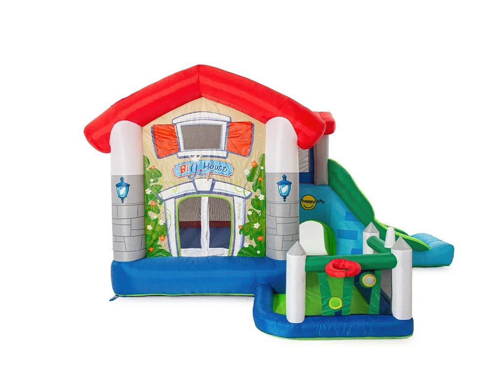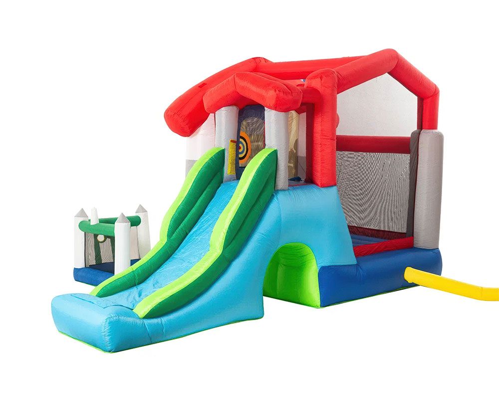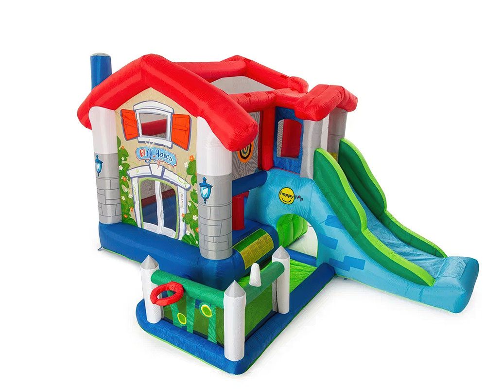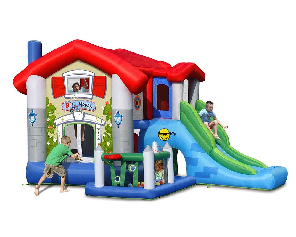 Конструкция отличается многофункциональностью. Она представляет собой чудесный дом с отдельным входом и окошком, снаружи имеются большая горка и сухой бассейн.