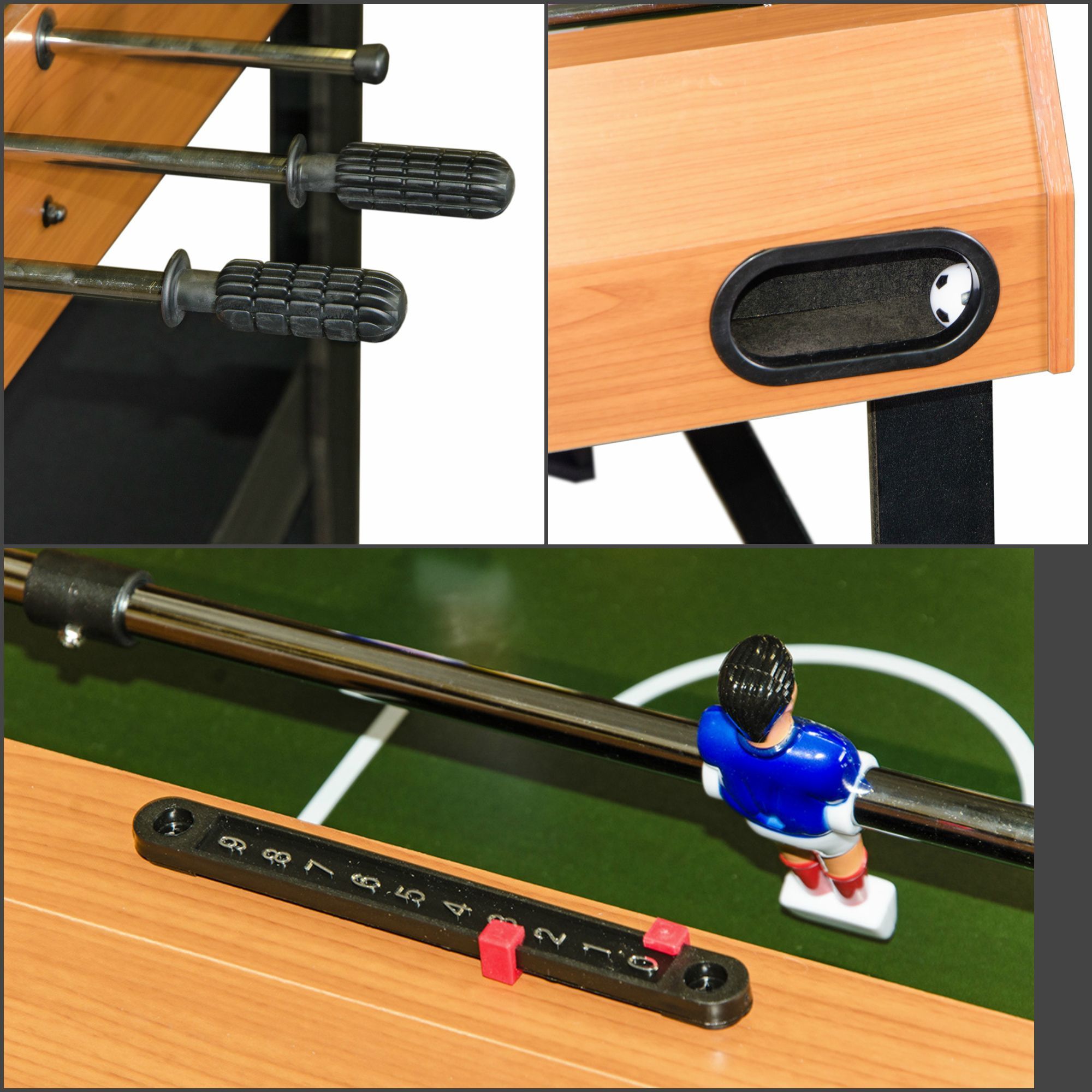 Материал игрового поляМДФ 3 мм с ламинациейШтанги (материал)полые, хромированная стальМатериал корпусаМДФ 12 мм с ПВХ ламинацией, высота 16,5 смМатериал ногМДФ с ПВХ ламинациейЦветорехРегулировка высоты столанетМатериал рукоятокпластикТип штангисквознаяАксессуары в комплектемячи - 2 шт.Габариты ДхШхВ121 x 61 x 78,1 смИгровое поле105 х 58,4 смДиаметр штанги12.7 ммРазмер стола4 футаВес нетто16 кгРазмещениенапольныйТип игрыкикерУпаковкаКартонная коробкаНогиL-образные 1,2 см толщиной с перекладиной 0,3 см толщинойСтрана происхожденияКитайМячAE-02, Ø 31 ммМатериалМДФВес в упаковке, г18Габариты в упаковке, см62x5x125 -
