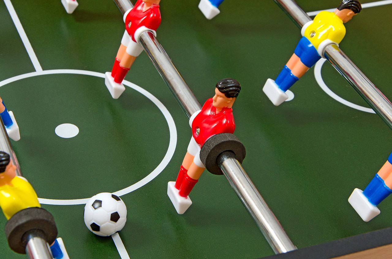 Настольный футбол выполнен из высокопрочного МДФ, что гарантирует долговечность использования.