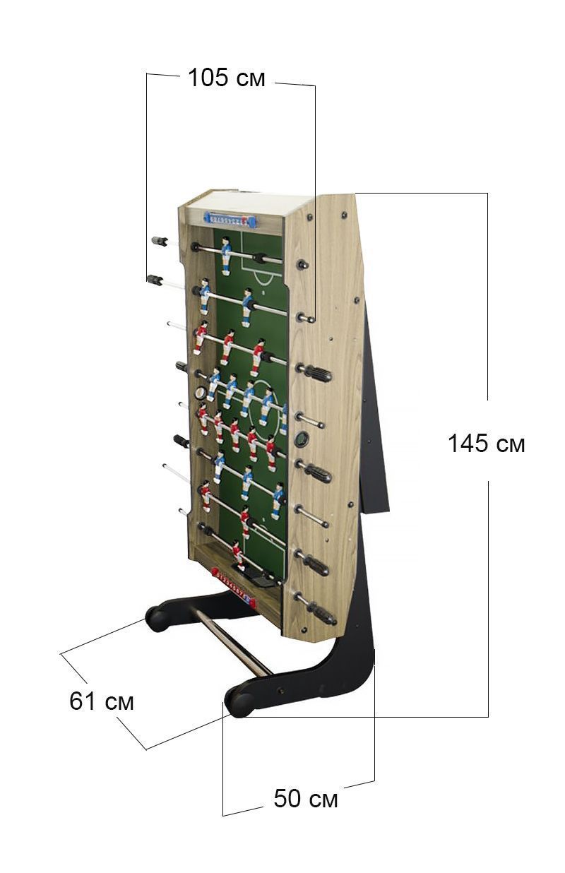 Для любителей настольного футбола идеально подойдет складная модель - игровой стол «Maccabi». Это уменьшенная модель кикера «Maccabi». Складная конструкция поможет сэкономить пространство и позволит Вам убрать стол, когда он не нужен. Так же длинные ноги оборудованы удобными колесами для транспортировки и сделаны таким образом, чтобы стол при игре не гулял и был максимально устойчив.