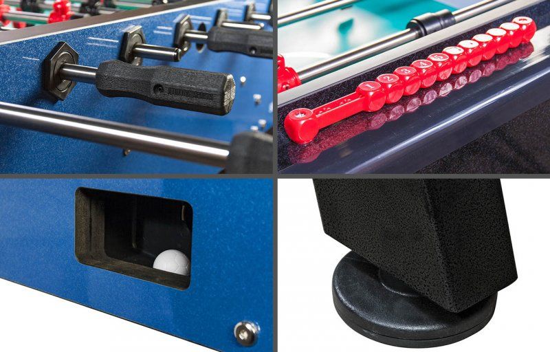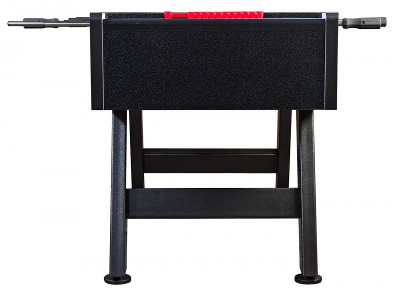 За счет своей конструкции и внушительного веса стол очень устойчив. Мощные металлические ноги снабжены домкратами для установки кикера на неровных поверхностях.