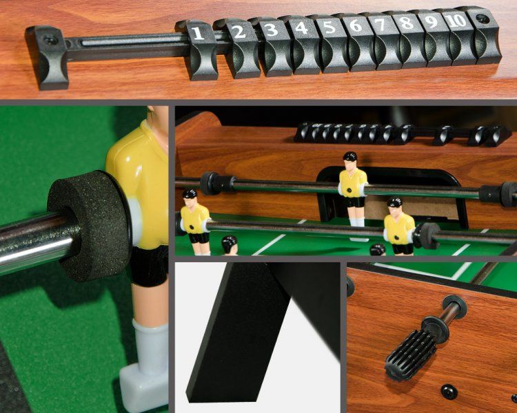 Дополнительным бонусом станет выполнение ручек из каучука, что обеспечивает отличный контакт с ладонями. Поверхность корпуса изготовлена из ударопрочного материала, который защищает от царапин и других механических повреждений. Ввиду того что стол очень устойчиво и уверенно стоит, конструкция позволит не только играть, но и поддерживать от падения некоторых неустойчивых друзей, которые любят пропустить кружечку-другую качественного пенного в лучших традициях немецких пабов! :)