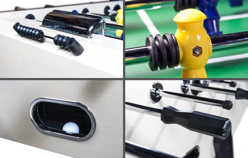 Компактный, прочный и с отличными игровыми характеристиками, этот стол способен удовлетворить пожелания, как новичков, так и продвинутых игроков в кикер.