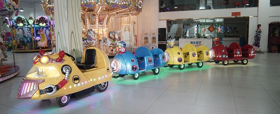 Веселый паровозик со знакомыми персонажами для торговых и развлекательных центров и площадок.