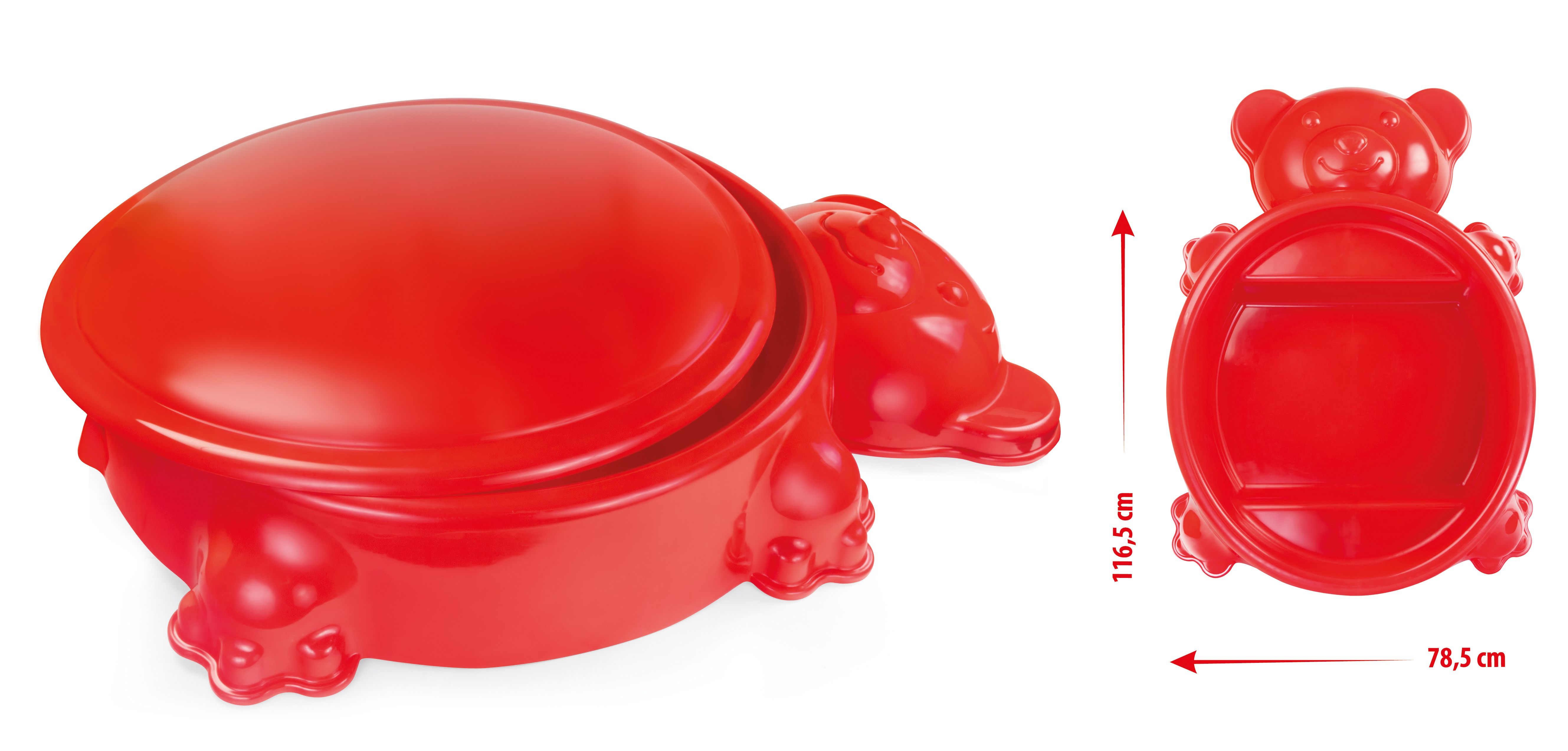 Детская песочница изготовлена в виде красивого слоника или медвежонка и может использоваться в закрытом виде для игры в качестве столика. -