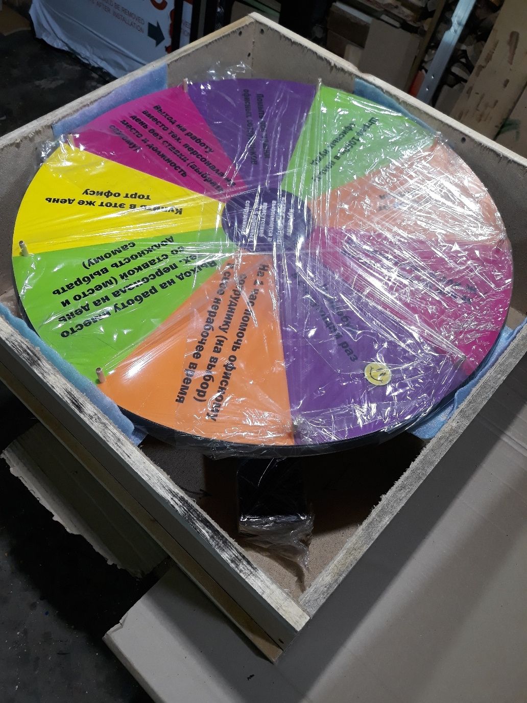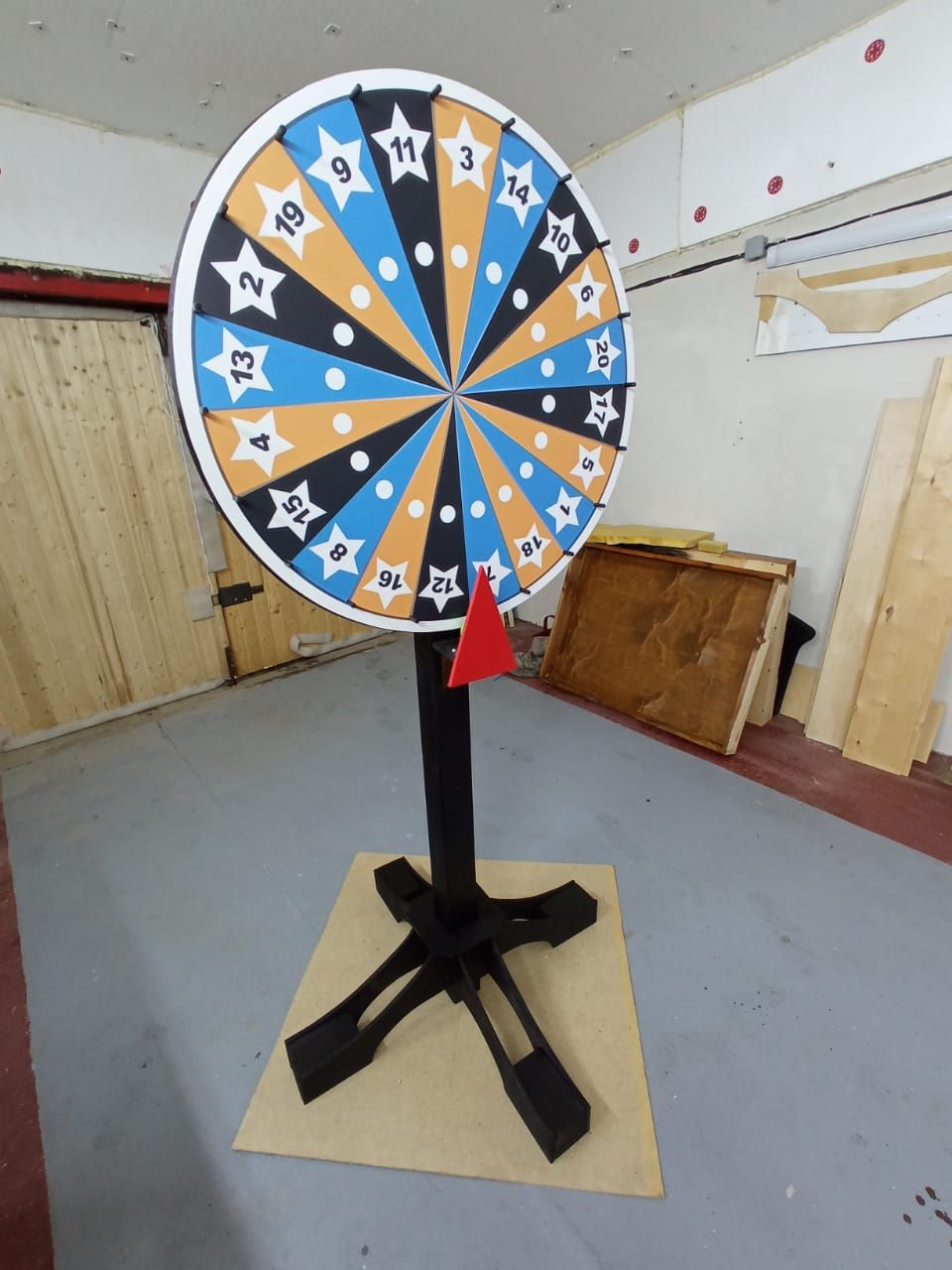Добавить комментарий АльбертНужны ли какие либо разрешения на данный аттракцион, и есть ли с ним паспортКомментироватьИнтернет-магазин "Все Купи"Здравствуйте, Альберт! Разрешений и лицензий на данный аттракцион не требуется. В поставке с аттракционом идет комплект документов - паспорт и сертификат.МилаМожно узнать суть этого аттракциона?КомментироватьИнтернет - магазин «Все КупиЗдравствуйте, Мила! Колесо удачи можно использовать в нескольких вариантах игры. Если это розыгрыш приза, то здесь все просто: вращаем барабан и ждем выпавшую цифру на которой остановится и покажет стрелка, дальше по заранее подготовленному списку даем приз участнику. Если использовать как аттракцион: играющий не глядя тянет плашку с цифрой из мешка или выбирает ее самостоятельно, далее вращает барабан, если цифры совпадут, получает приз . Дизайн и надписи можем изменить под ваши требования, как и расцветку конструкции. Например вот так: