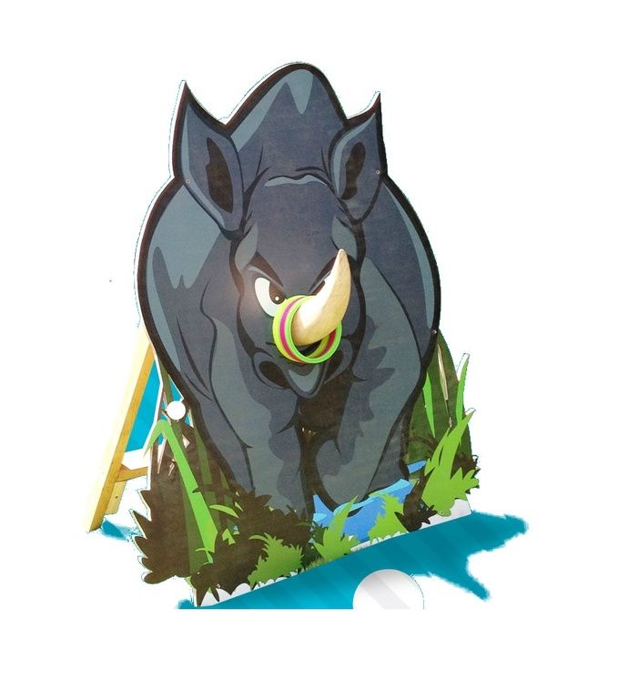 Цель игры: накинуть кольца определенное количество раз на рог носорога.