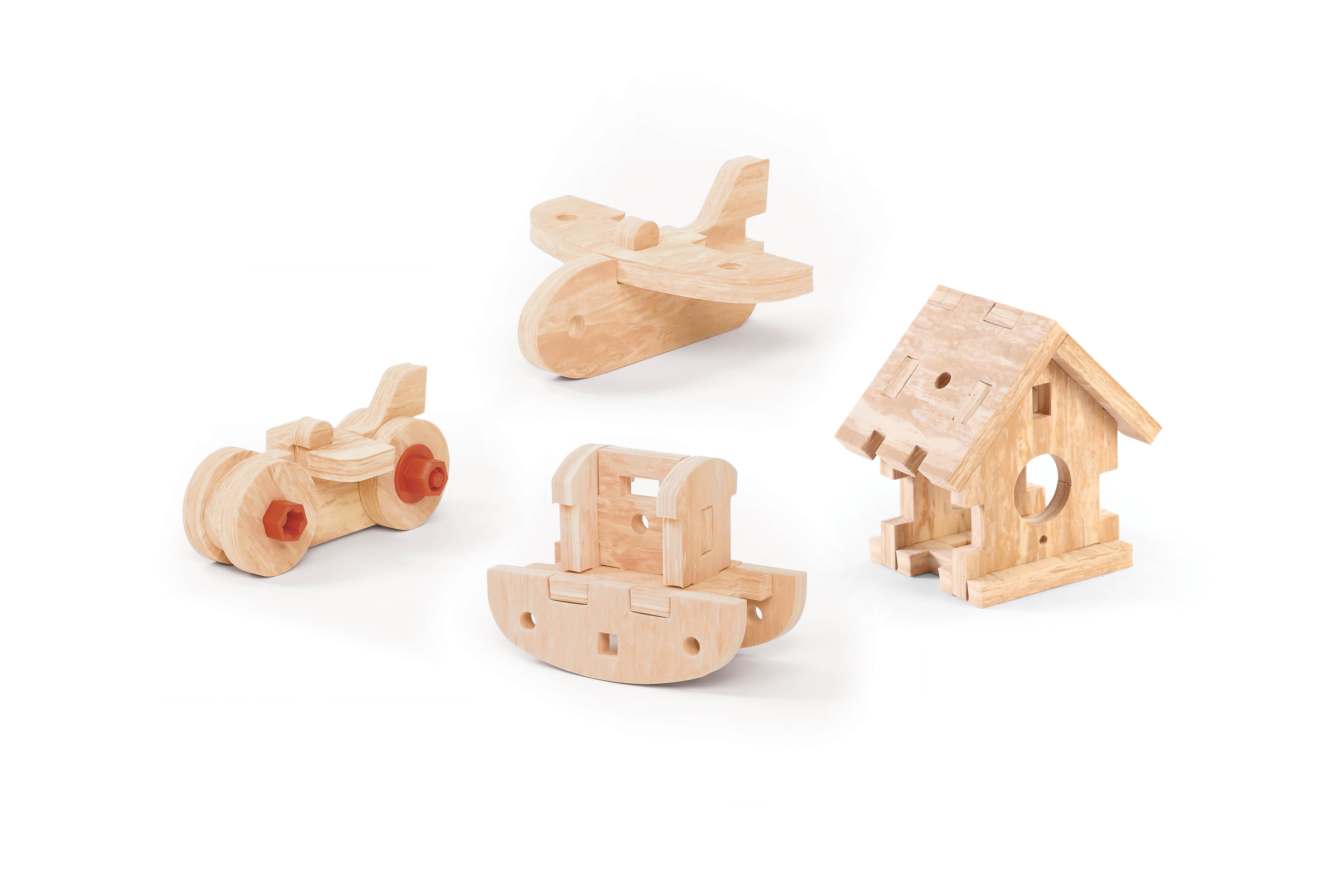 - В комплект также входят 50 аксессуаров - электрическая дрель, болты и гайки, пила, молоток, плоскогубцы, отвертка и многое другое;