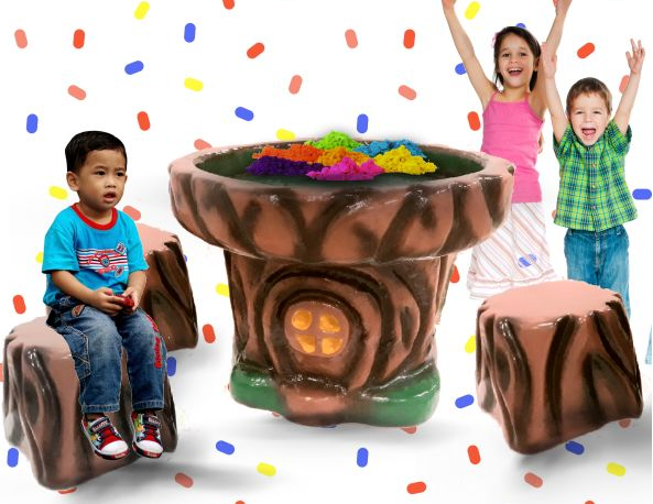 Стол из стеклопластика для кинетического песка. Каждый комплект уникален и изготавливается вручную. Возможны другие цвета оформления. 3 стульчика в комплекте. Выдерживает нагрузку до 100 кг.