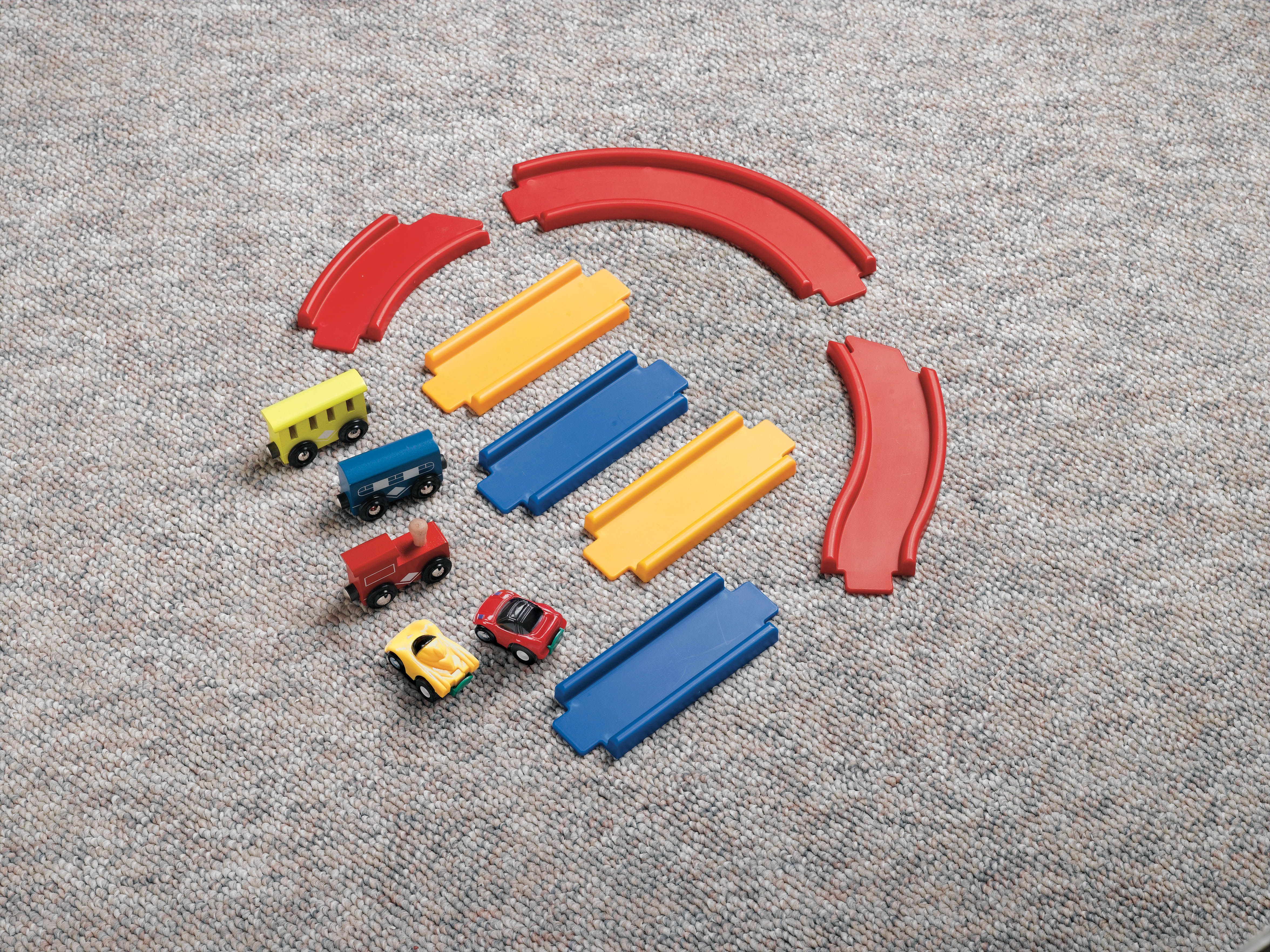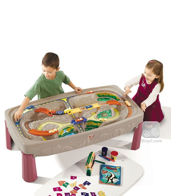 Игровой стол с многоуровневым треком для машинок, защитная крышка превратит игровой стол в невысокий столик для рисования и настольных игр. В комплекте: поезд (1 локомотив и 2 вагона).