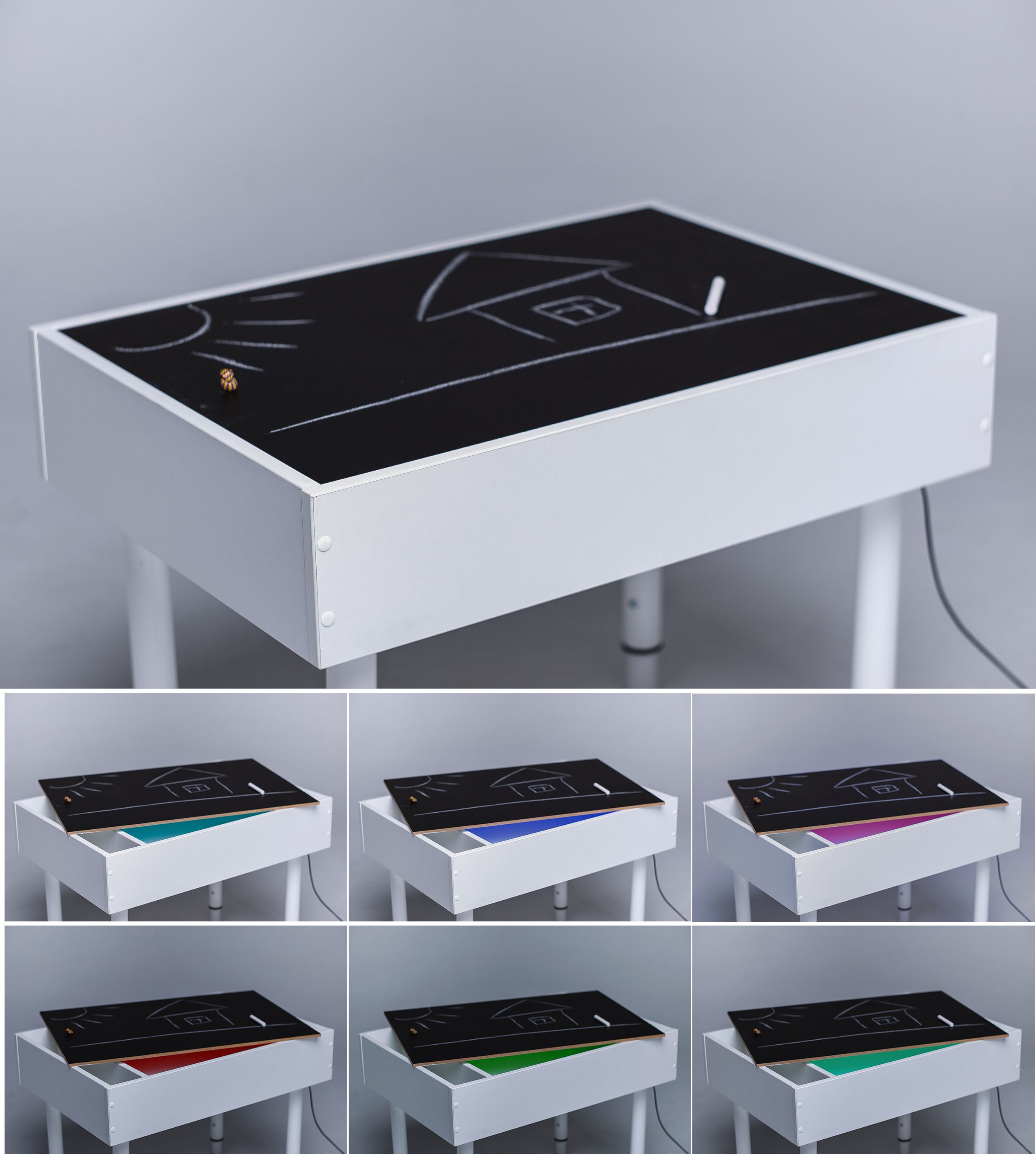 - двухсторонняя крышка (грифельная поверхность/поверхность для рисования светом)