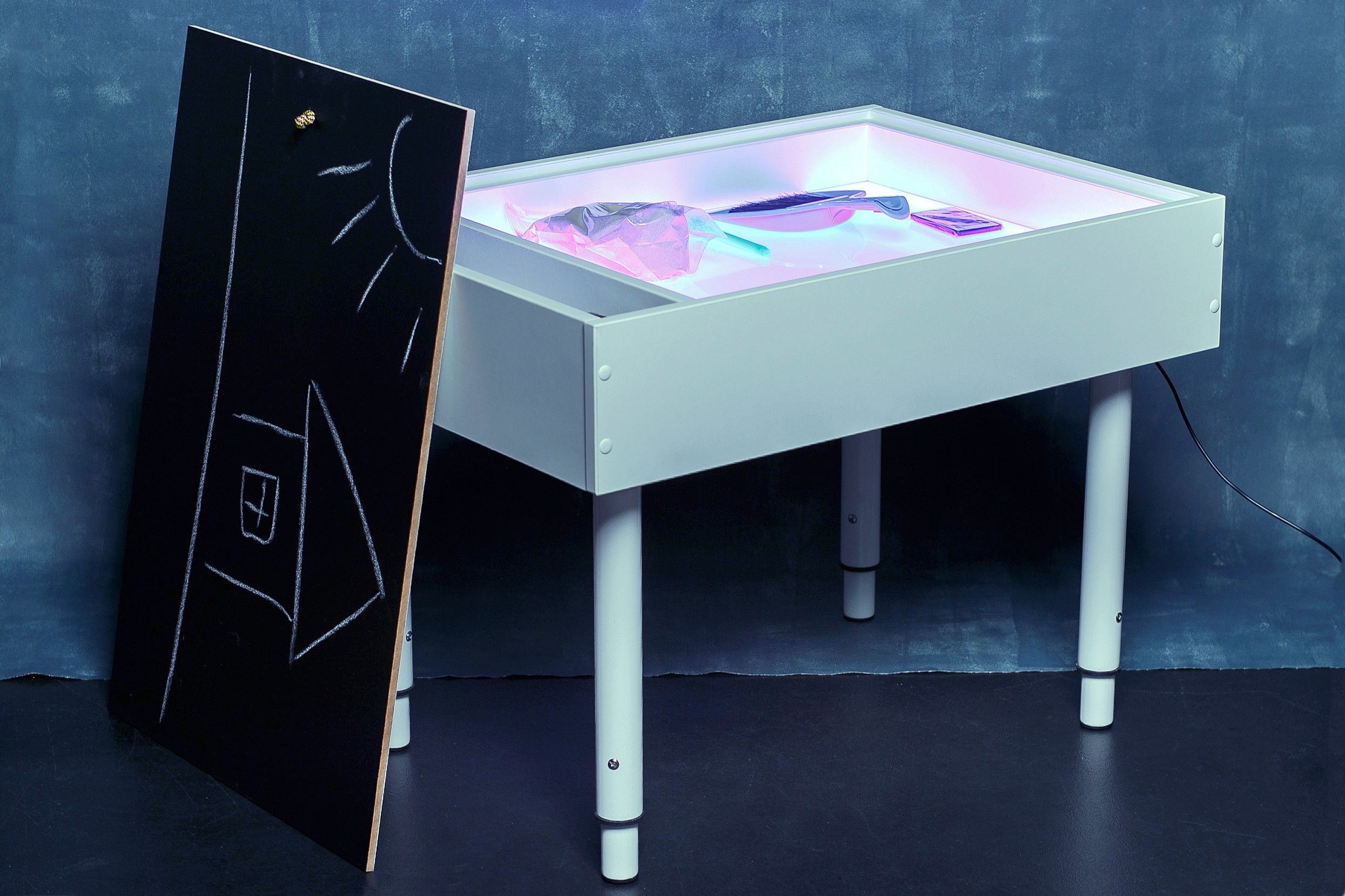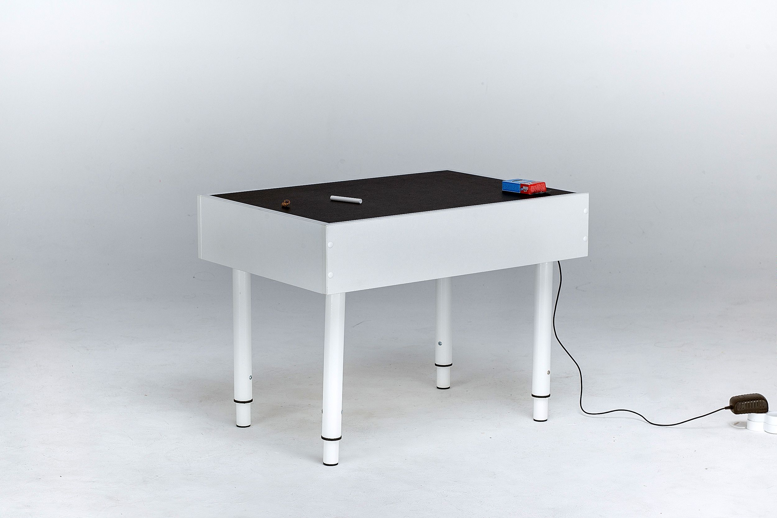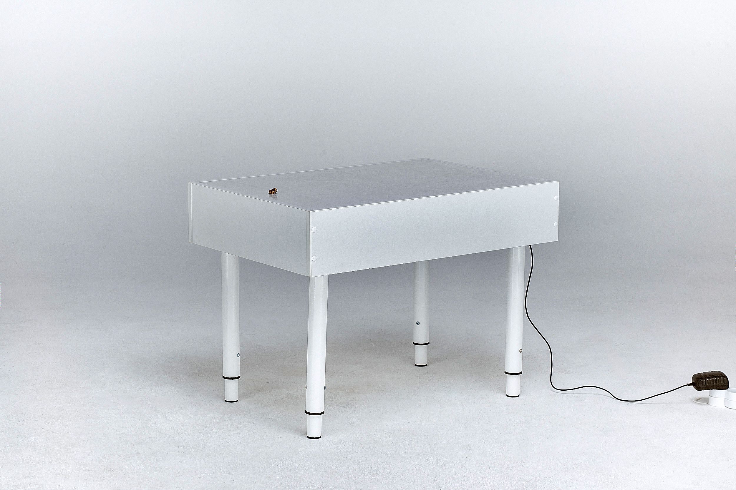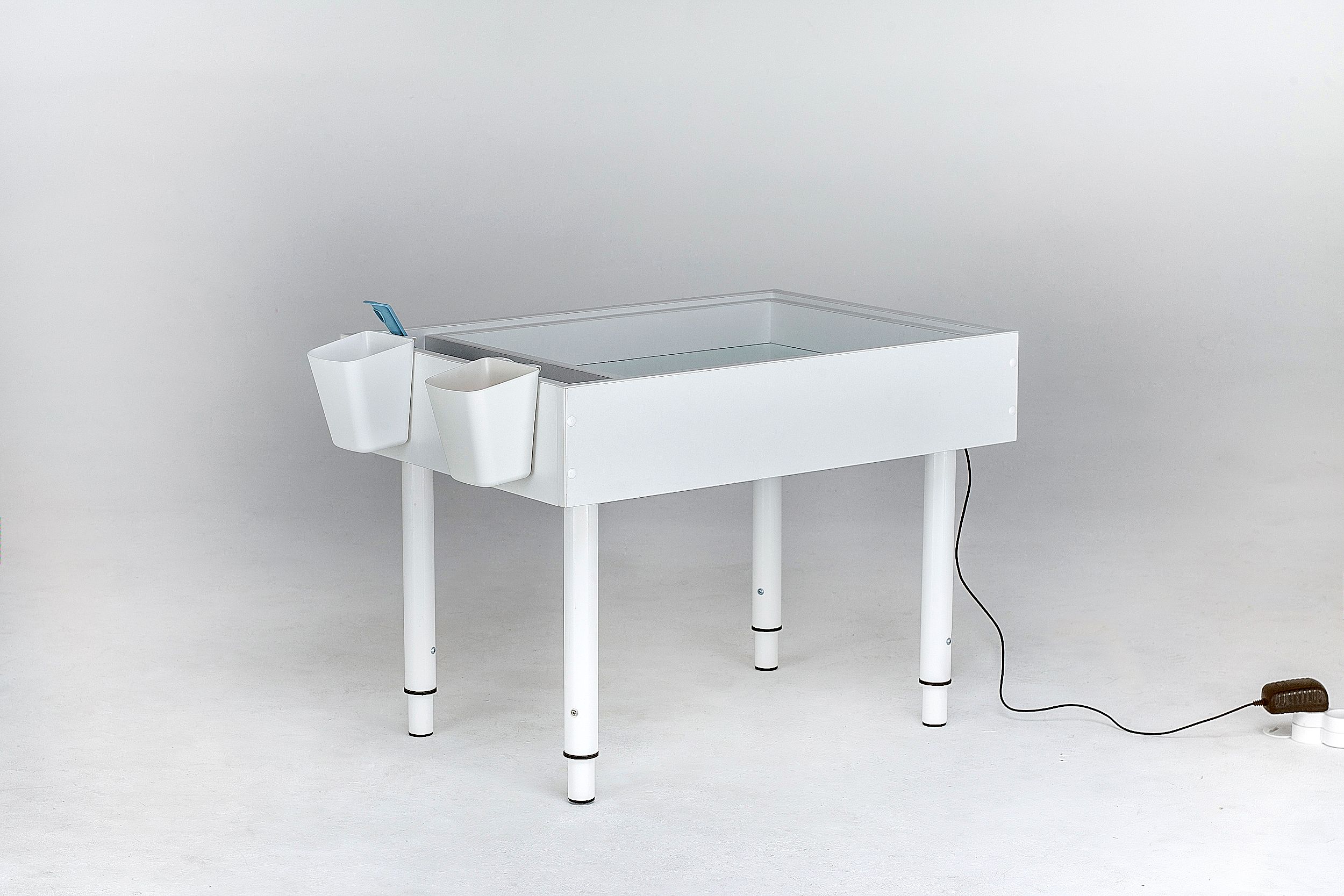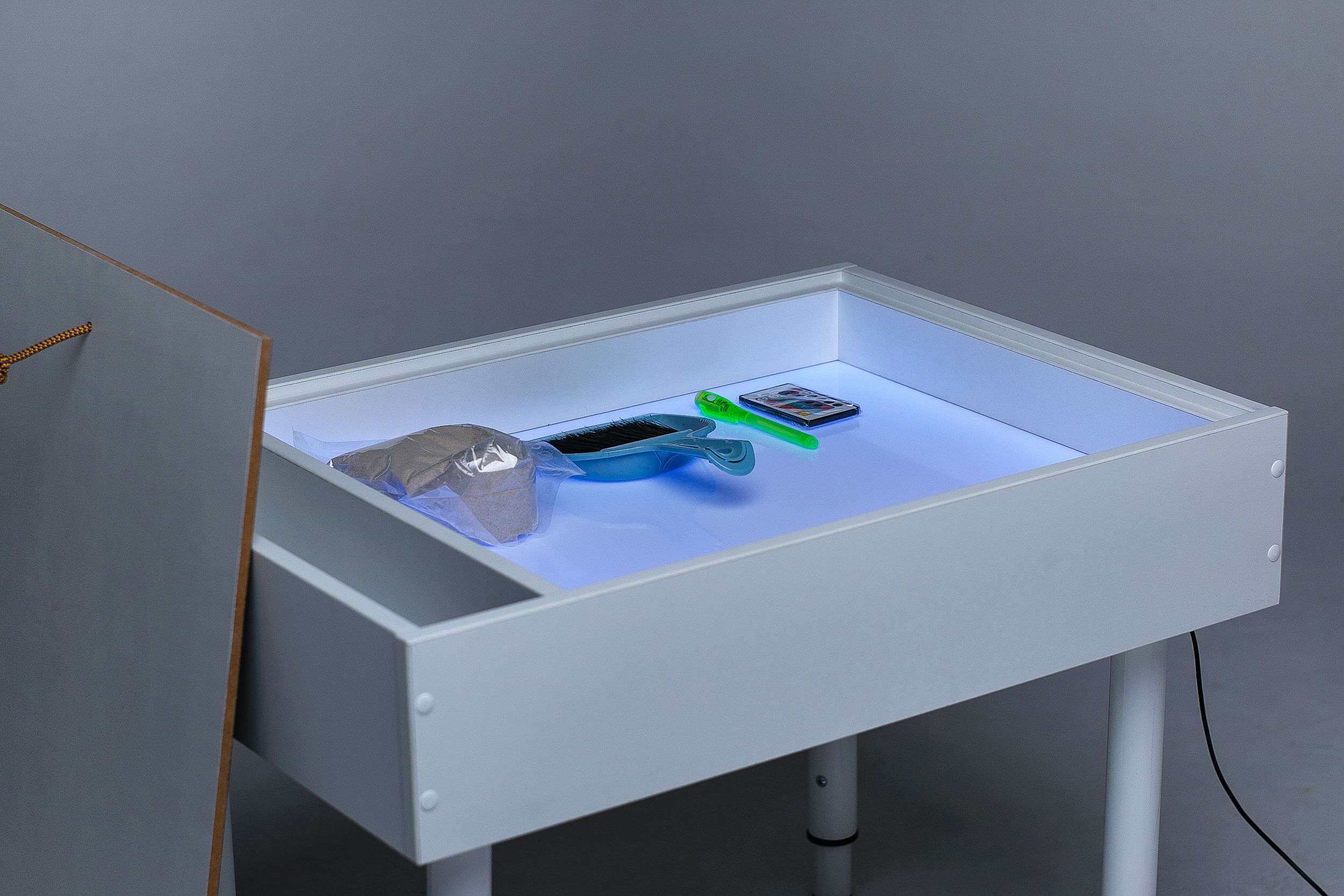 Столик можно использовать не только для игры с песком или светом, но и как письменный столик. Крышка изготовлена из прочного МДФ и хорошо фиксируется внутри песочницы. Для удобства крышка имеет шнурок, чтобы было удобно вытаскивать и переворачивать крышку на другую сторону.